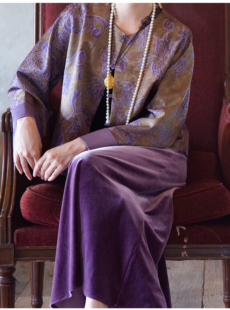 【门店同款】ENJOY秋季云敛-东方画笔高腰丝绒半身裙 166493685