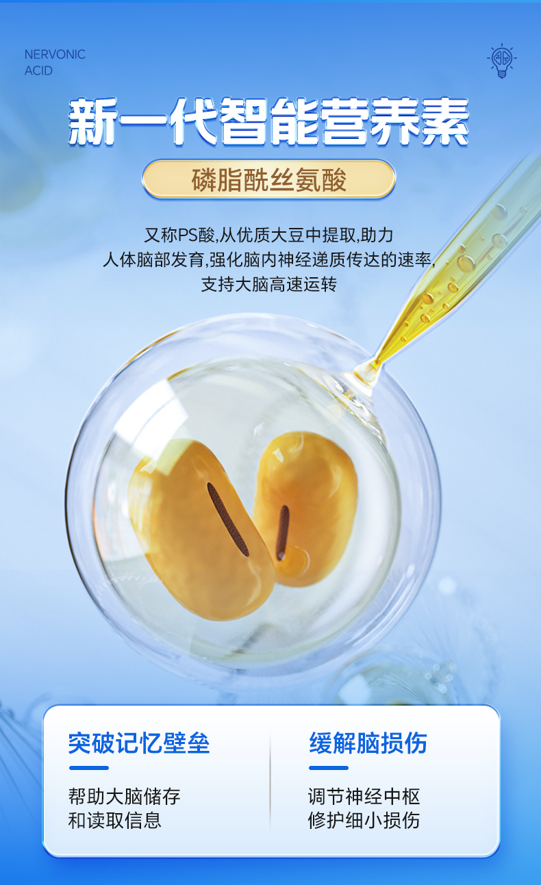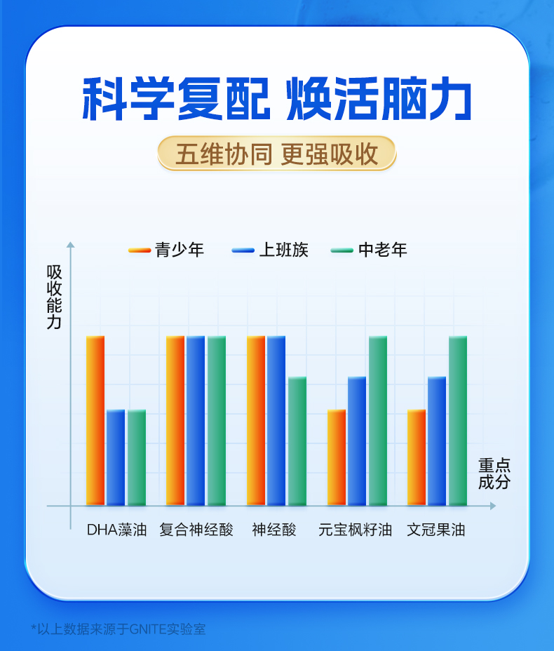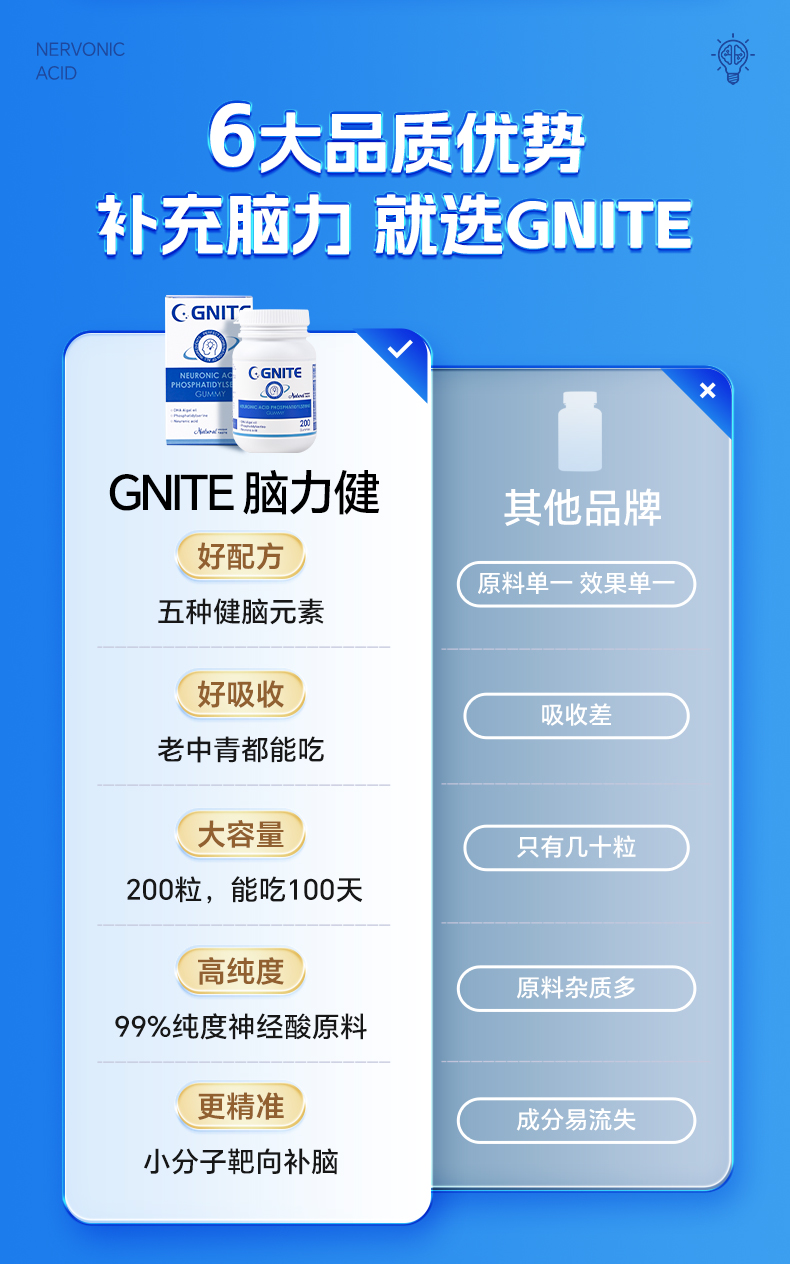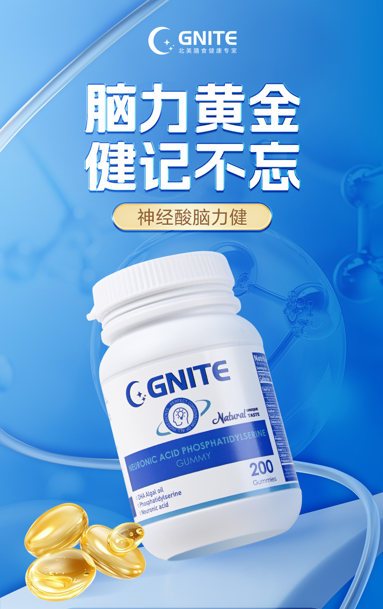 【深蓝专属】GNITE补脑DHA复合神经酸200粒大脑黄金补充营养