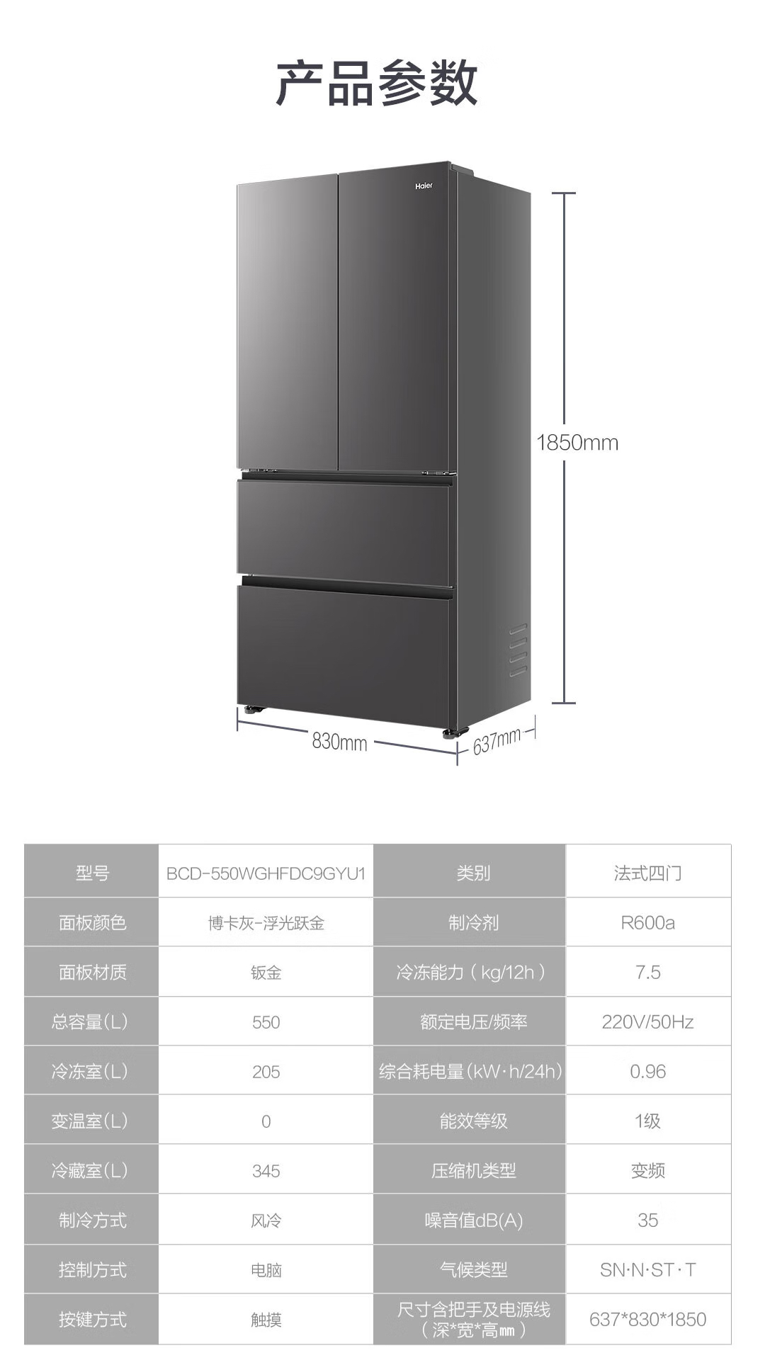 海尔(Haier)冰箱 BCD-550WGHFDC9GYU1