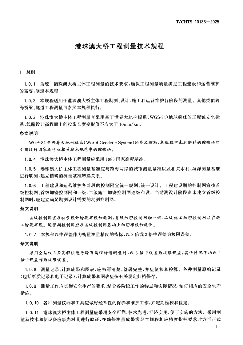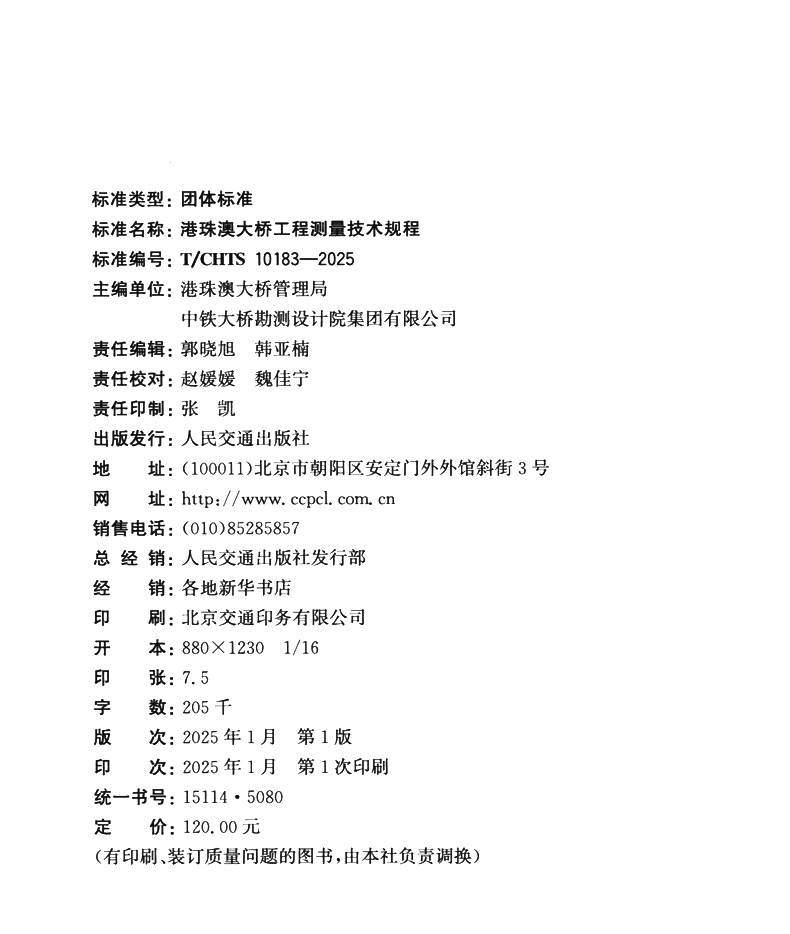 书名:港珠澳大桥工程测量技术规程(T/CHTS 10183—2025)
