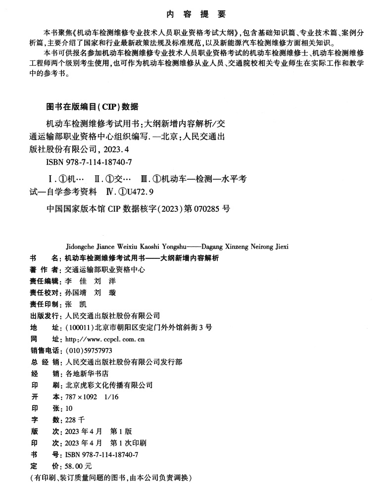 书名:2023机动车检测维修考试用书--大纲新增内容解析