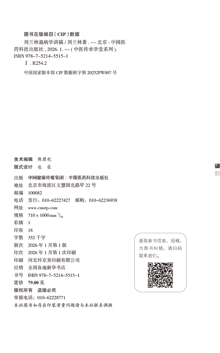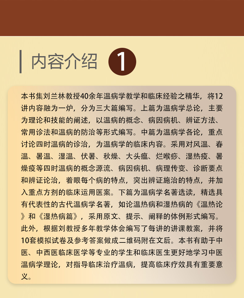 刘兰林温病学讲稿 中医传承学堂系列 刘兰林 著 并将10套模拟试卷及参考答案做成二维码附在文后 9787521455151中国医药科技出版社