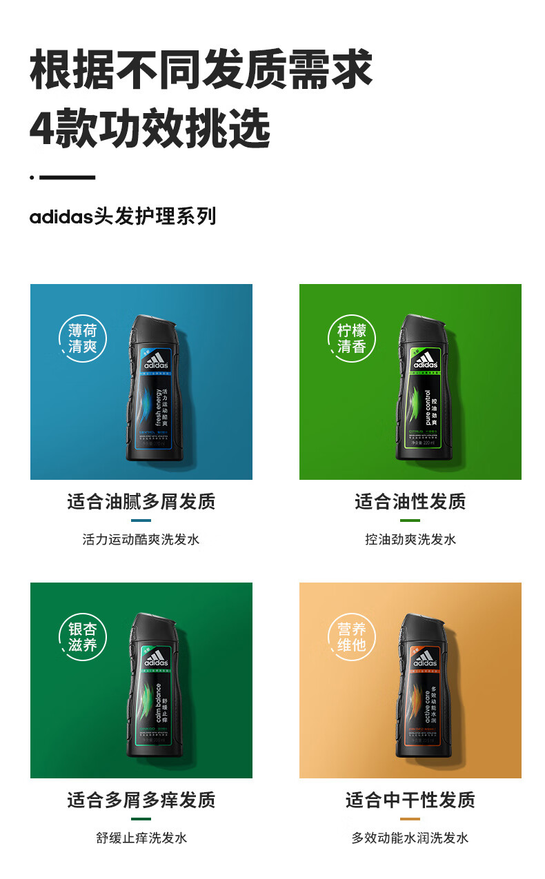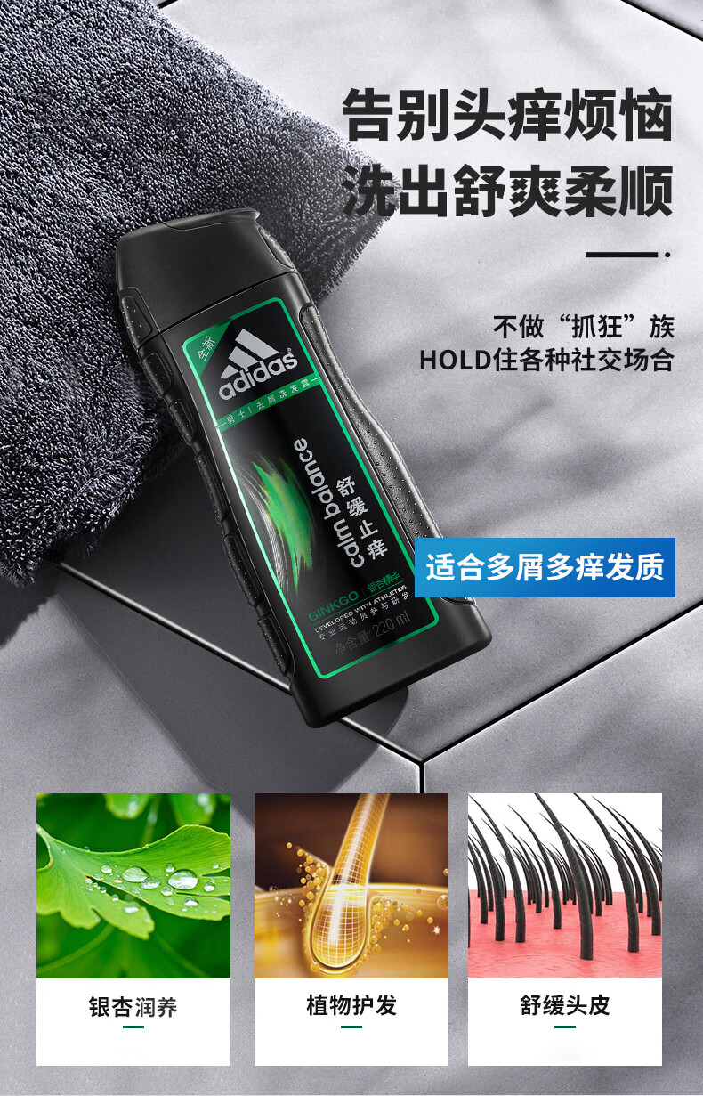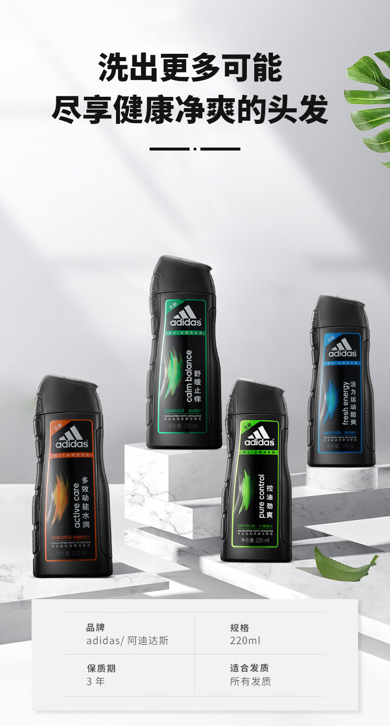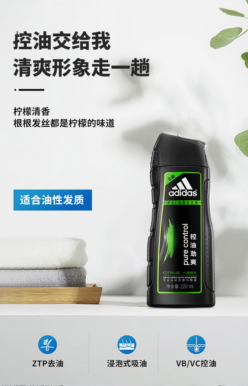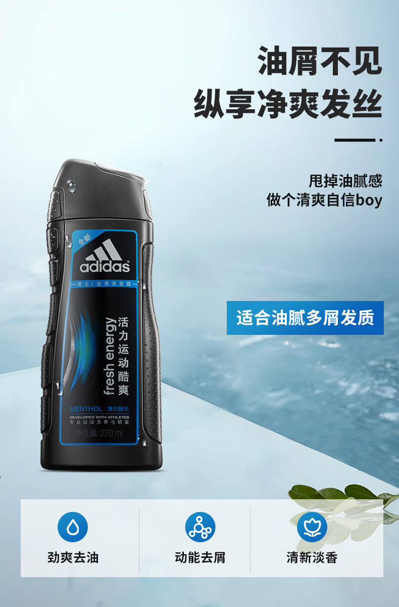 阿迪达斯 男士去屑洗发露220ml