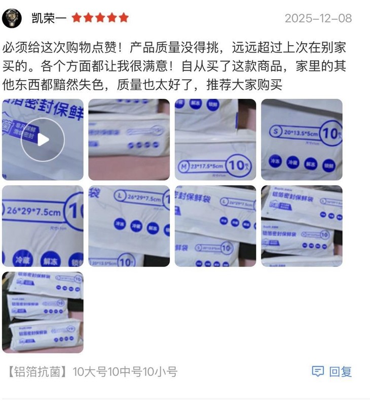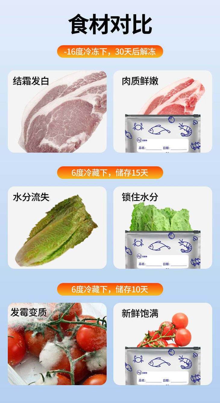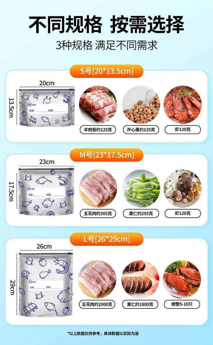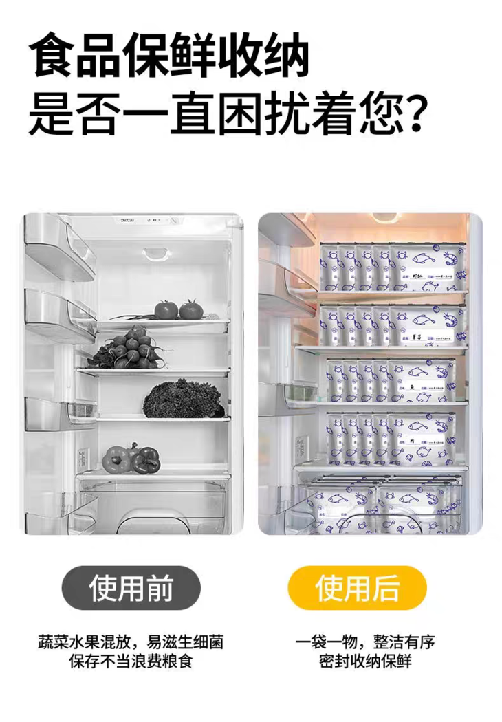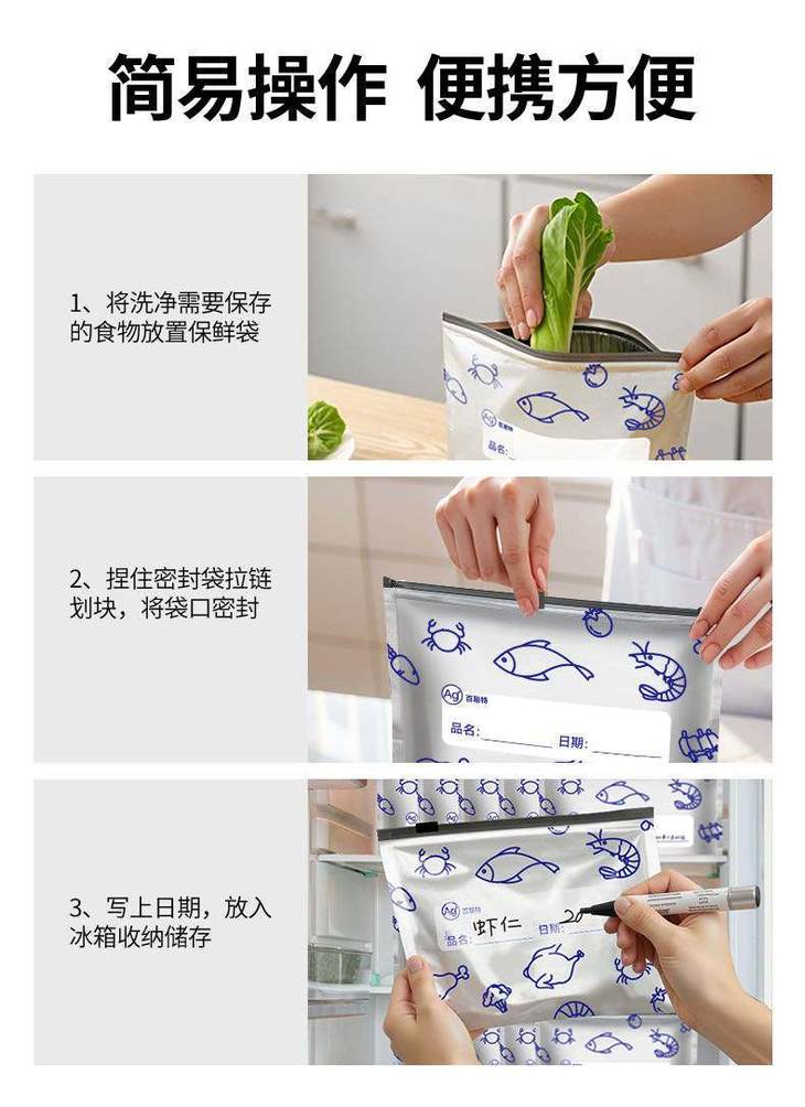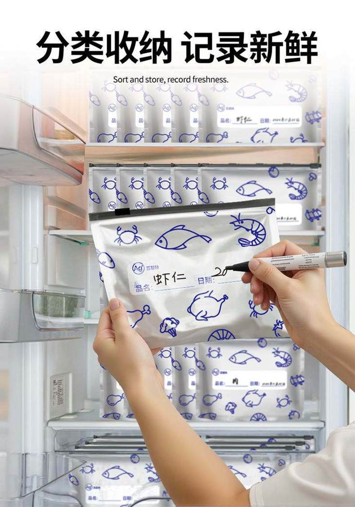 可书写区域: 每只袋子都有专属书写区,贴上标签 写上日期、食材名称 找东西一目了然,再也不用吃 “过期盲盒” 全温域适配 + 多场景 hold 住: 冷藏 / 冷冻 / 常温都能用,肉类冷解冻超均匀 零食 / 药品 / 干货全收纳,防潮防变质! 有它在,全家食材新鲜不浪费!!!
