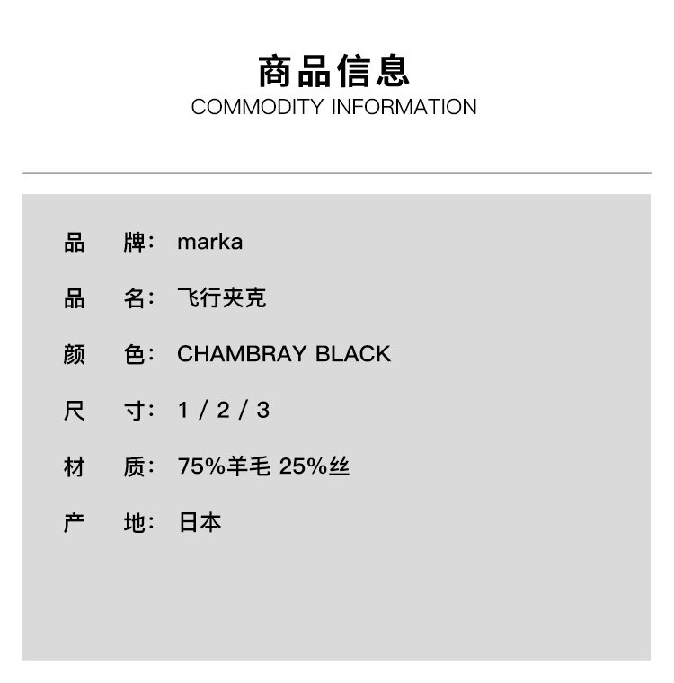 marka FLIGHT JACKET 羊毛丝绸混纺军事风飞行夹克外套