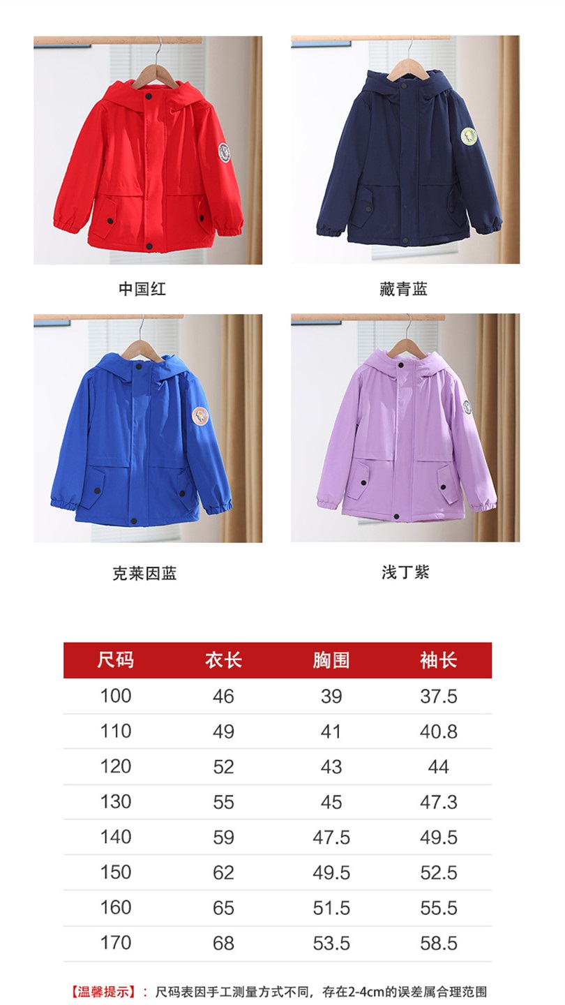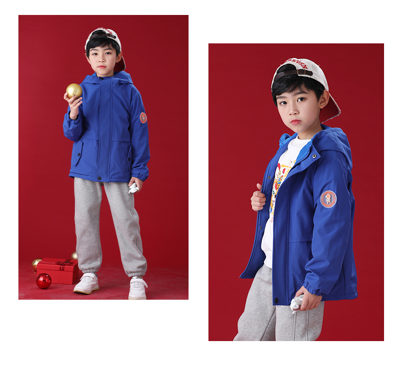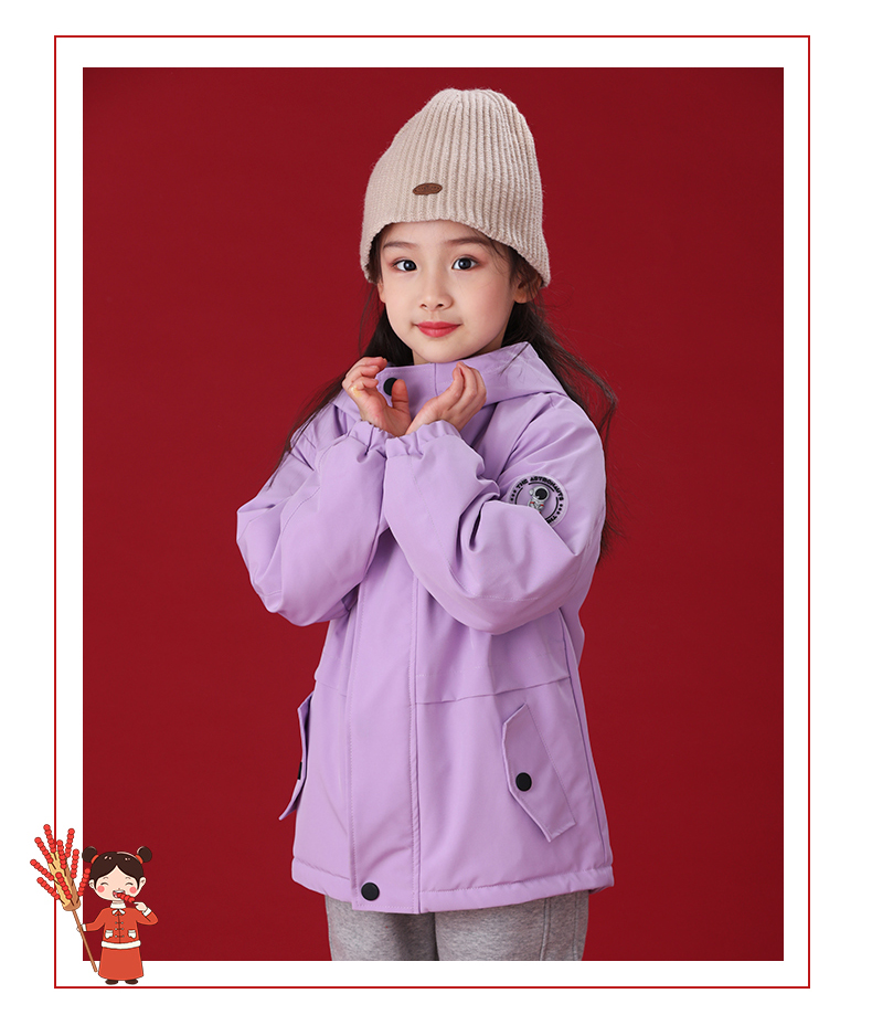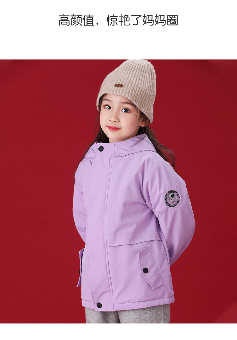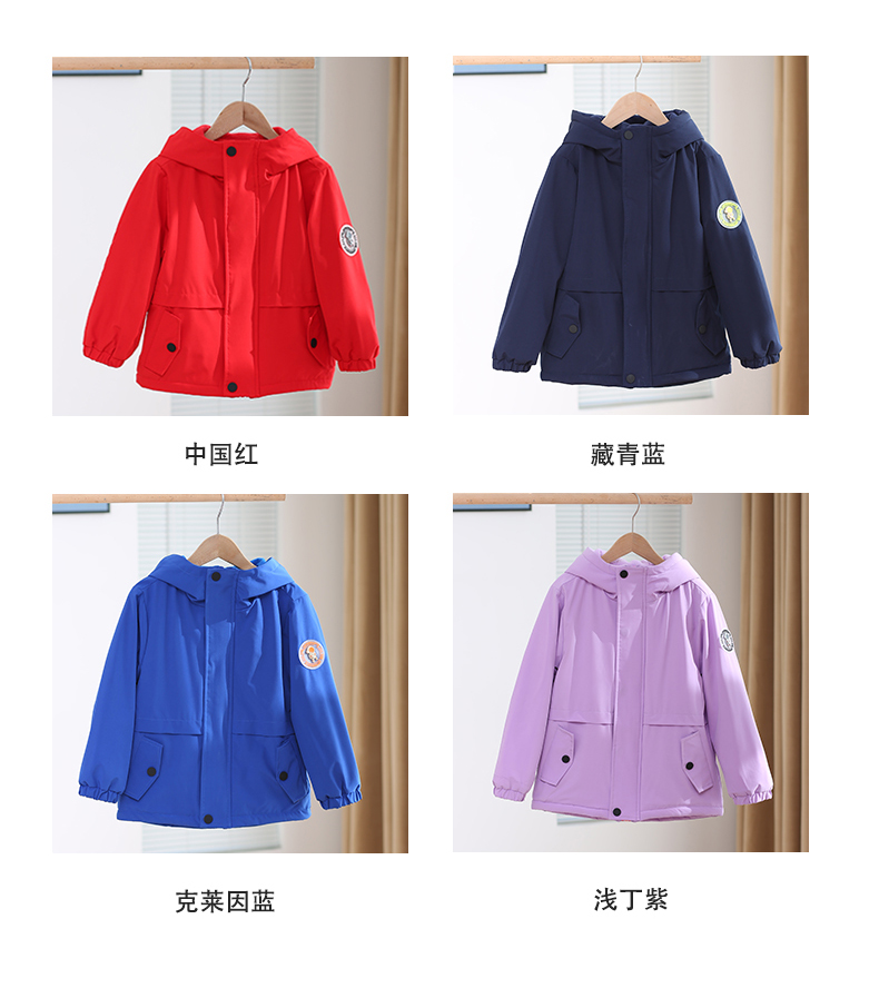 一:儿童活力撞色加绒/夹棉连帽防风衣