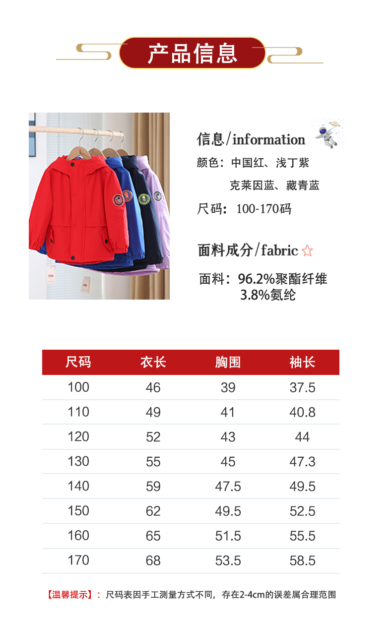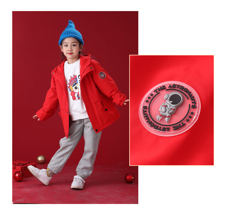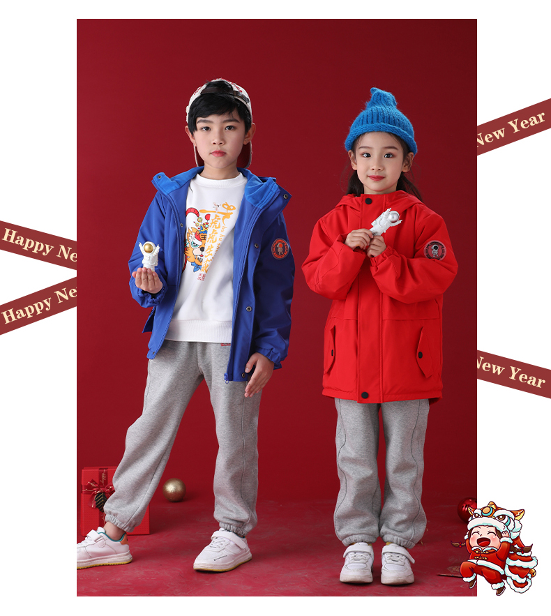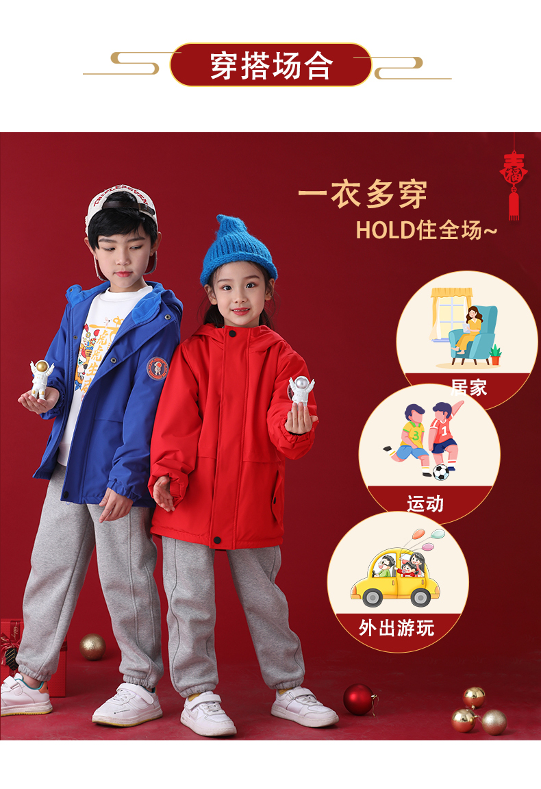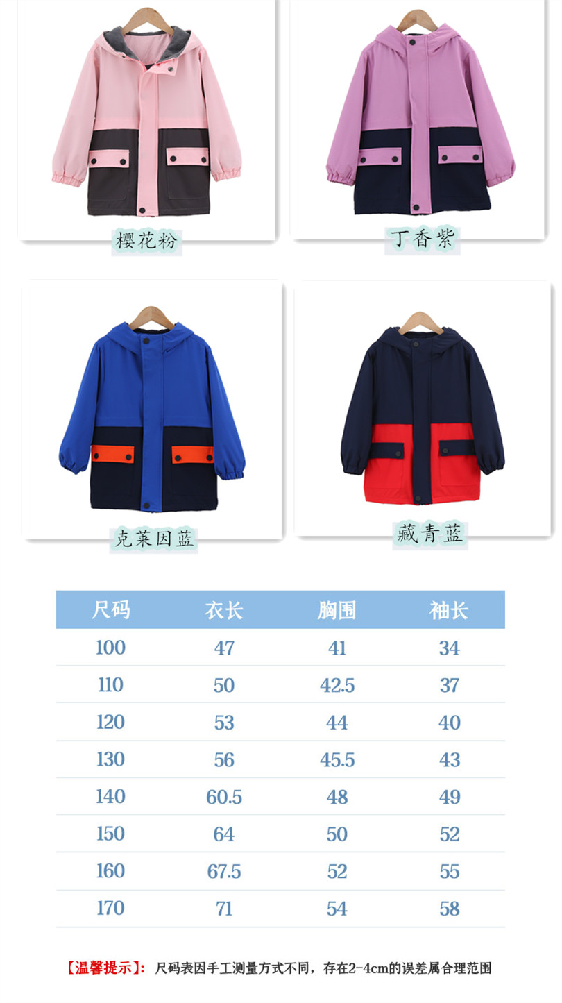 一:儿童活力撞色加绒/夹棉连帽防风衣