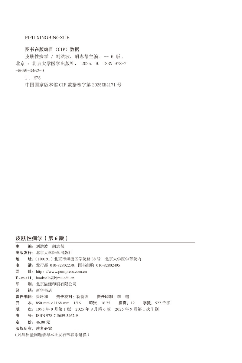 皮肤性病学 第6六版 十四五卫生高等职业教育专科校院合作“双元”规划教材 刘洪波 胡志帮 供临床医学类专业用 北京大学医学出版社