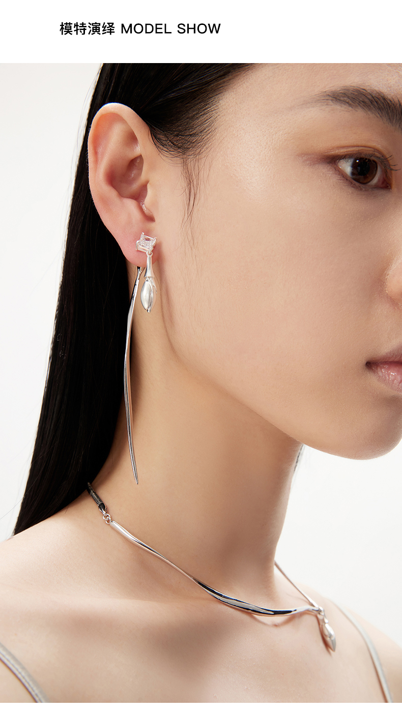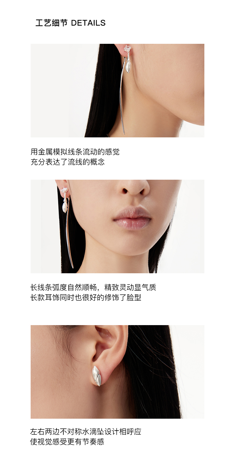lost in echo原创设计师款简约精致流线水滴坠AB款不对称耳环耳钉