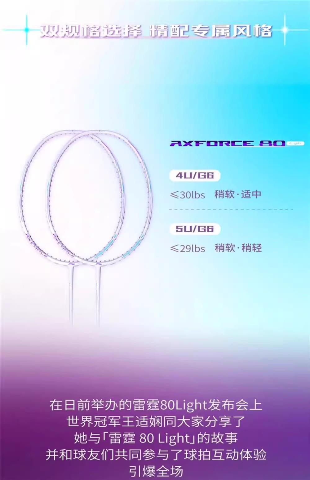李宁Lining雷霆80Light 羽毛球拍女生 王适娴同款全碳素纤维超轻比赛拍