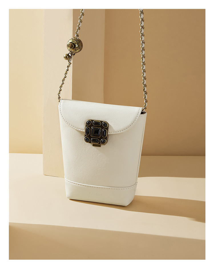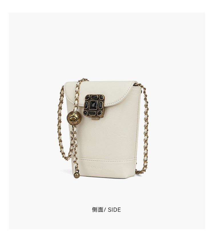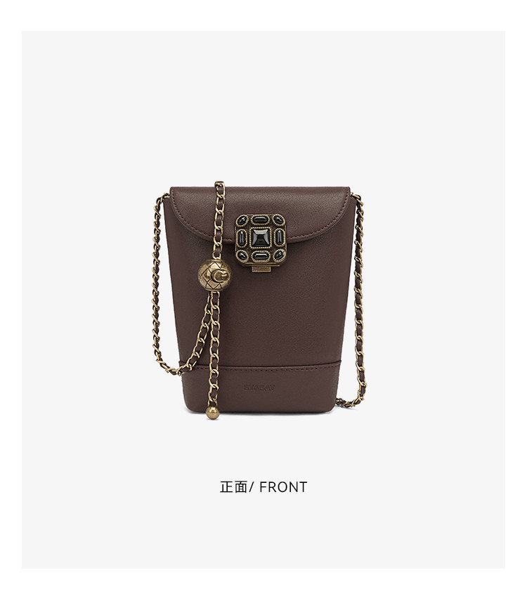 星期六复古宝石扣金属链条水桶包SSD521A060
