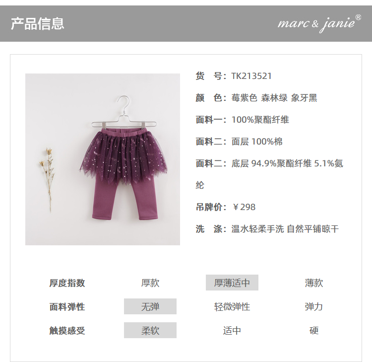 【马克珍妮 法式系列】新款宝宝秋冬装 女童打底裙裤213521