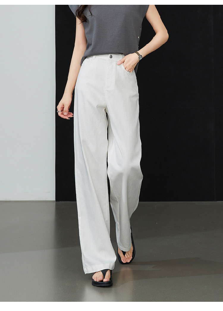 【白色-三防-阔腿裤】逸阳夏薄凉感天丝棉白色牛仔直筒长裤6343