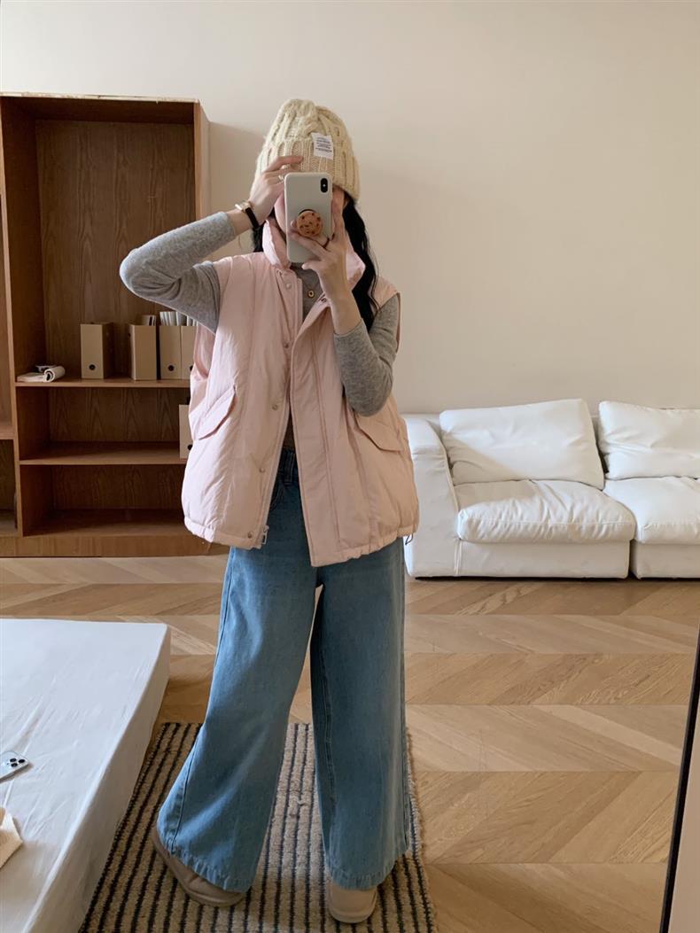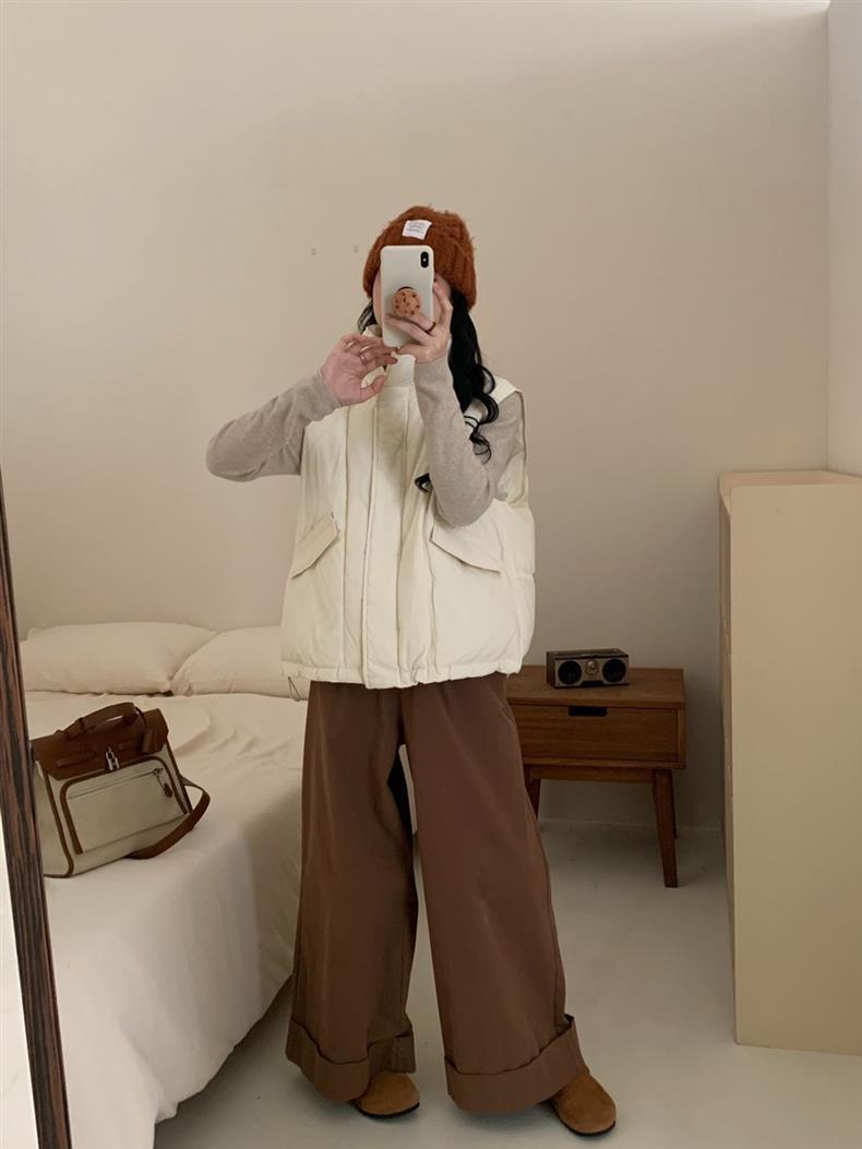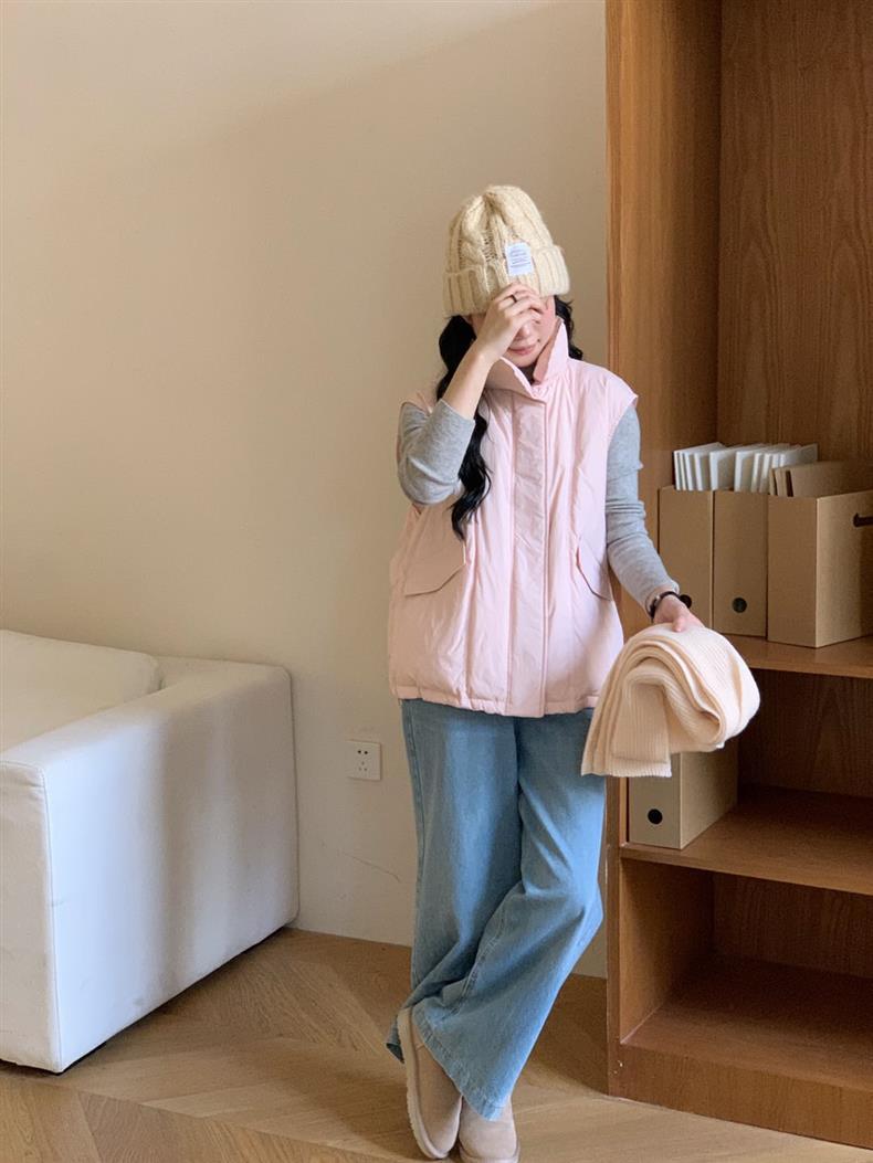 【YW】无忧购秋冬季新款白鸭绒休闲宽松短款马夹羽绒服背心马甲外套女F66(截单后3-5天发货)