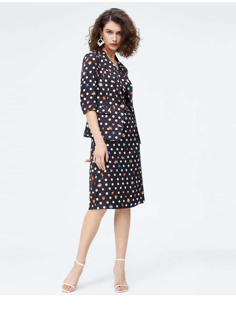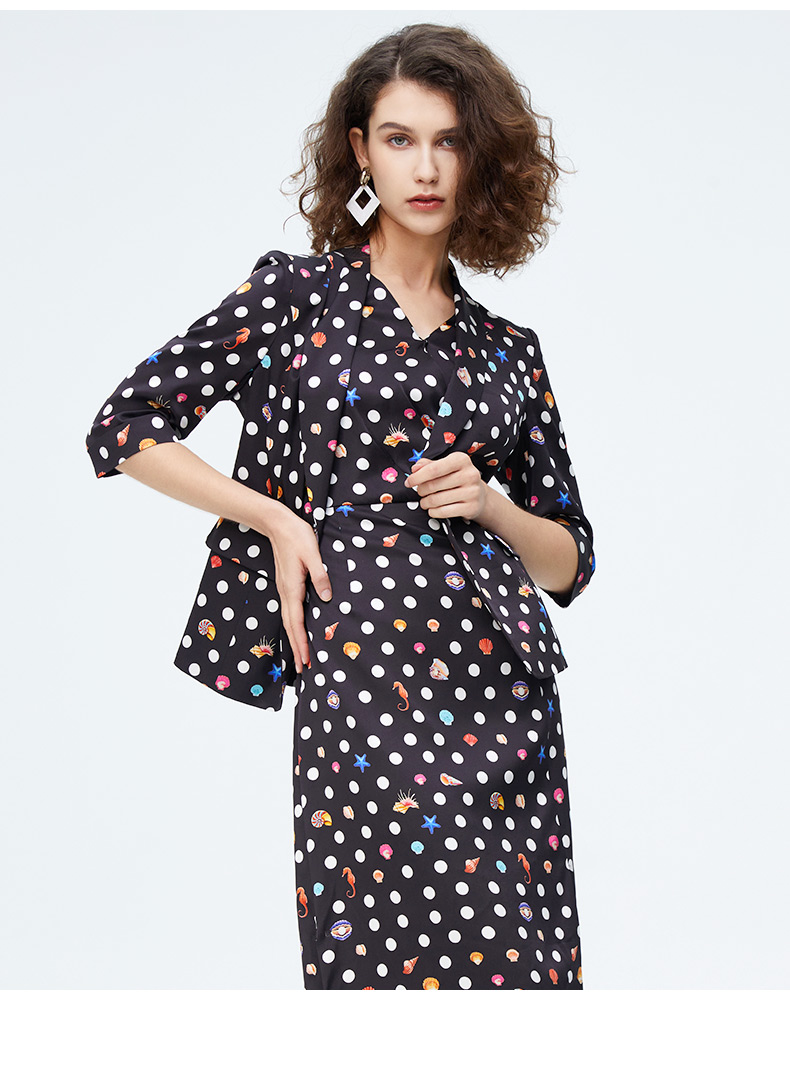 皮尔卡丹女装西装知性气质波点通勤修身西服P4227L4009B3