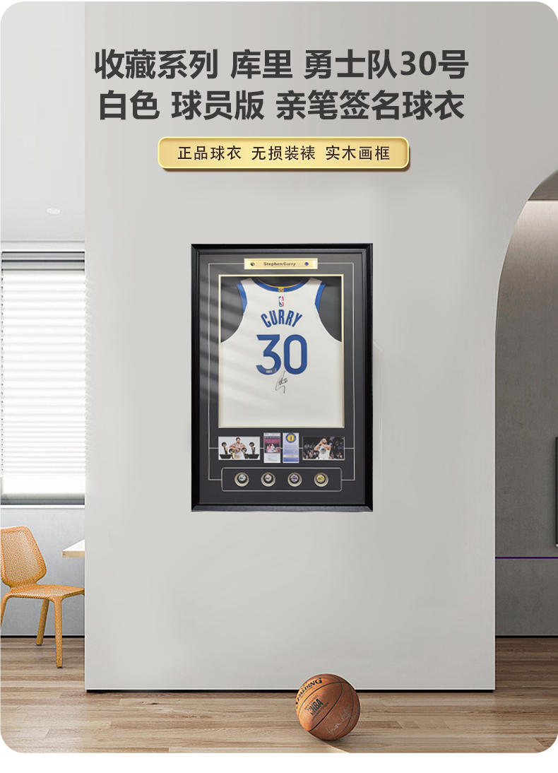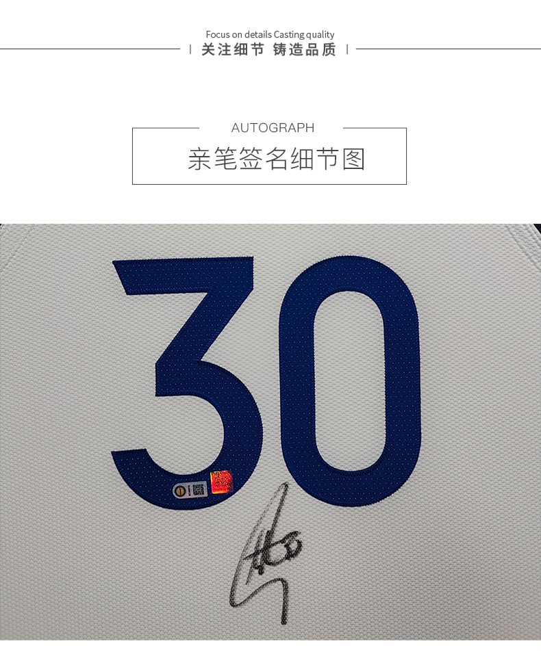 收藏系列 库里 勇士队30号白色 球员版 亲笔签名球衣