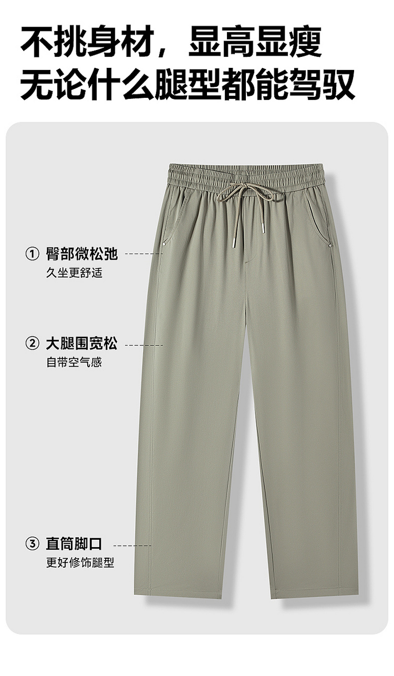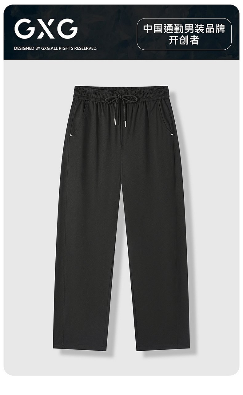 GXG男装【弯刀裤】26夏季时尚弹力舒适松紧腰系绳男式直筒休闲裤K&C