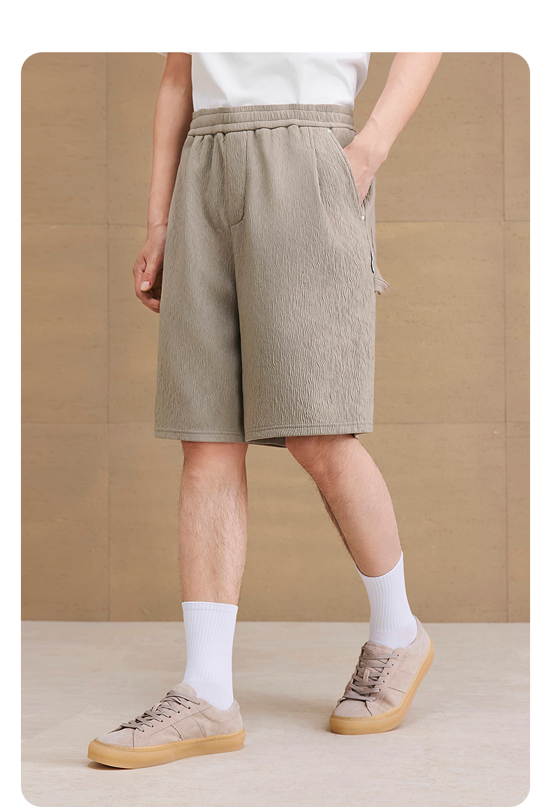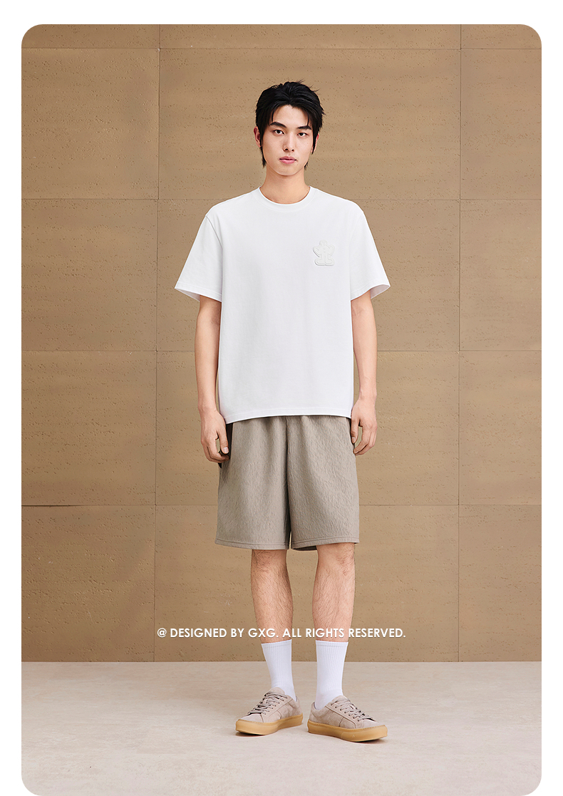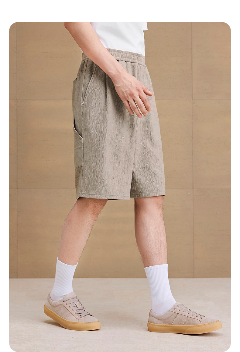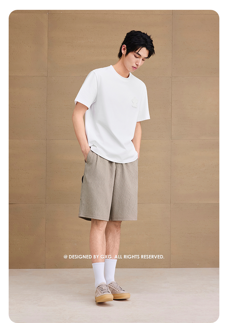 GXG男装 肌理树皮纹休闲短裤通勤男宽松撞钉五分裤 2025夏季新品
