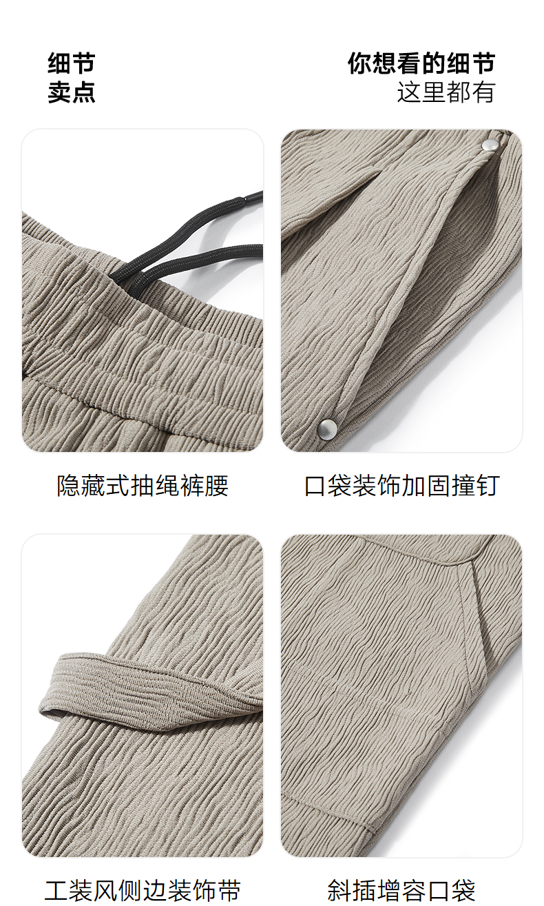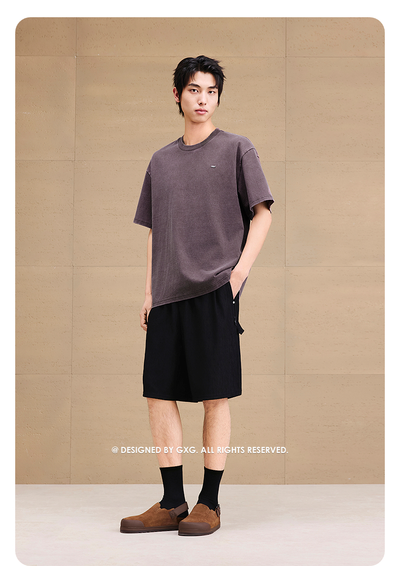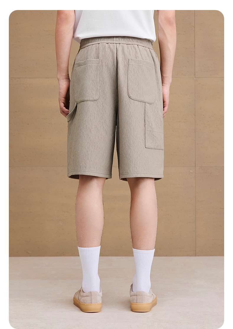 GXG男装 肌理树皮纹休闲短裤通勤男宽松撞钉五分裤 2025夏季新品