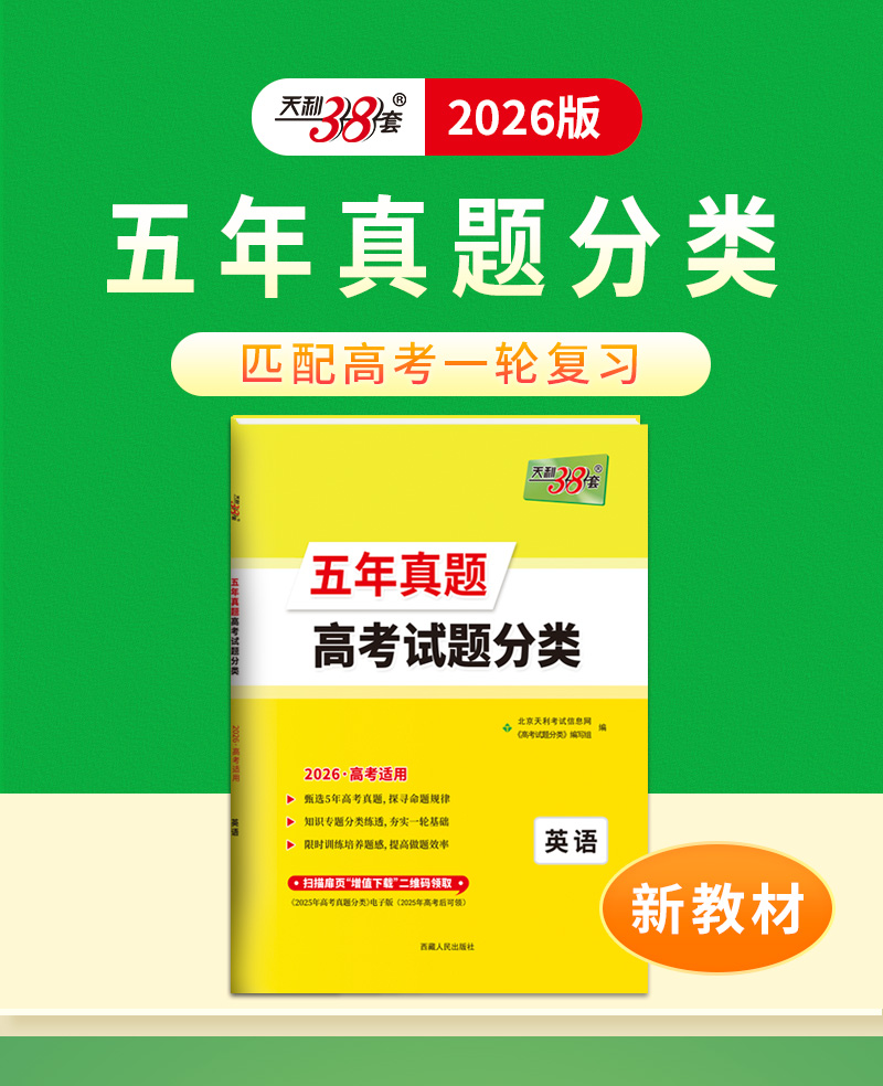 天利38套 2026五年真题高考试题分类 语文 数学 英语 物理 化学 生物 政治 历史 地理