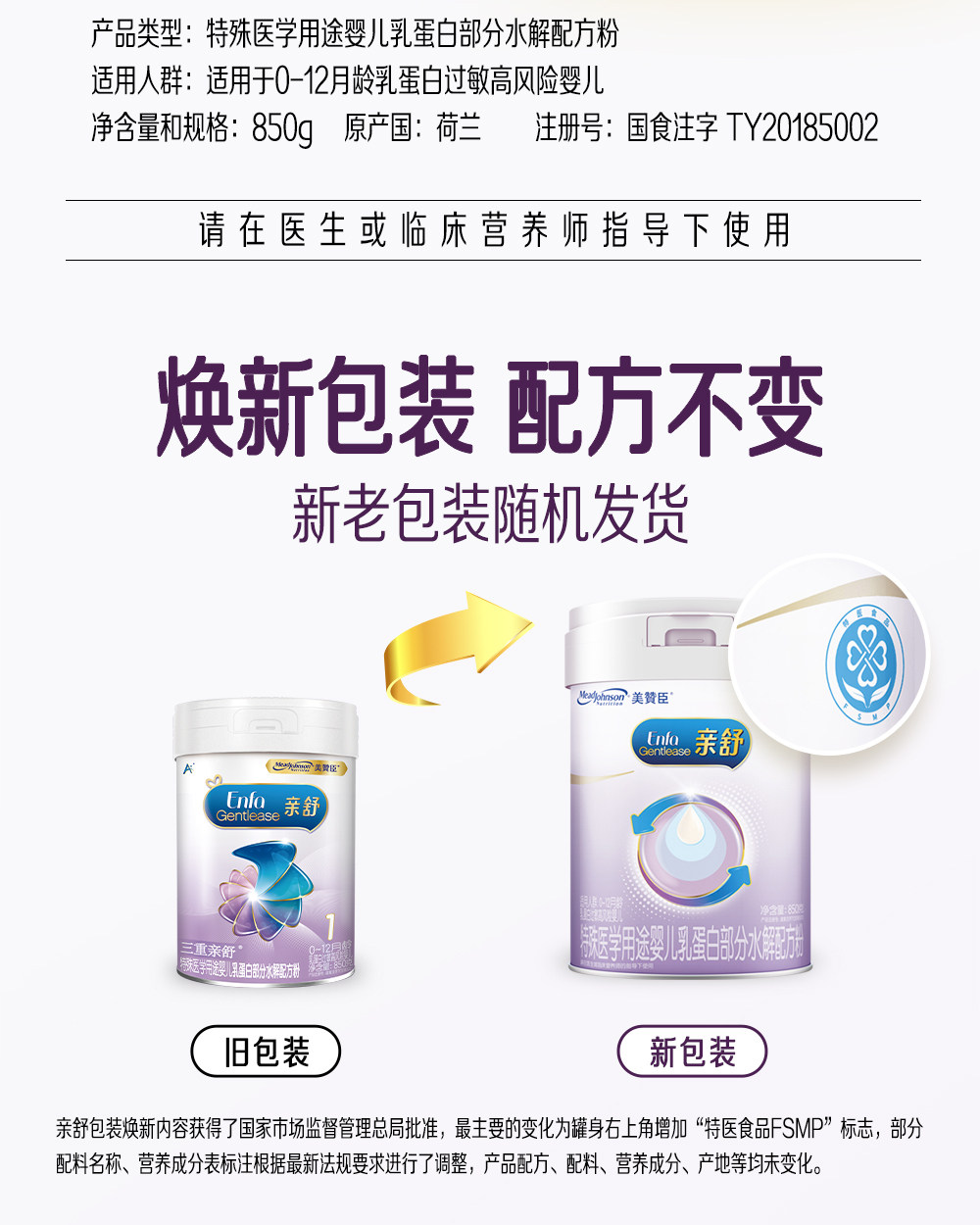 美赞臣 亲舒一段1段 850g克 婴儿部分水解蛋白奶粉