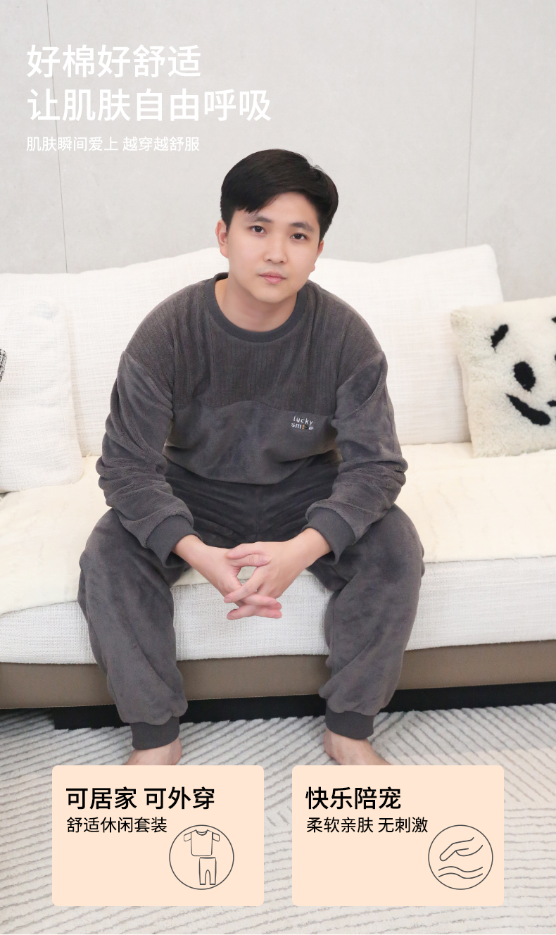 【88元1套】秋冬男士长袖长裤套头加绒家居套装-2243221