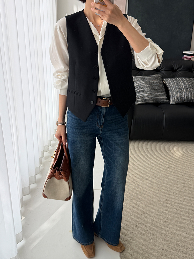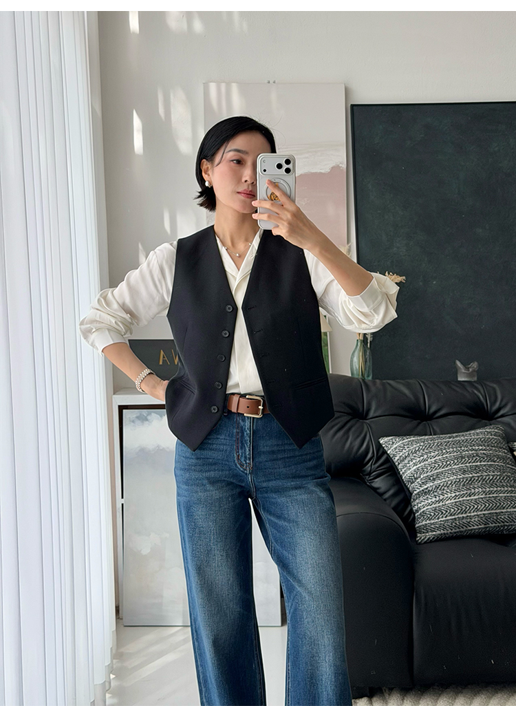 「工厂团购上新」100%羊毛 时尚通勤款 双色纽扣马甲2525