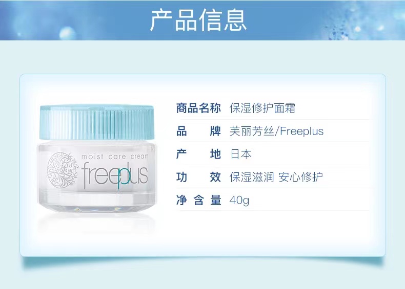 日本freeplus芙丽芳丝 保湿修复面霜40g 修护高保湿清透敏感肌孕妇可用