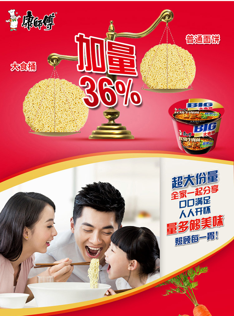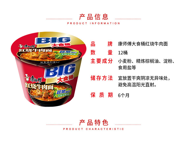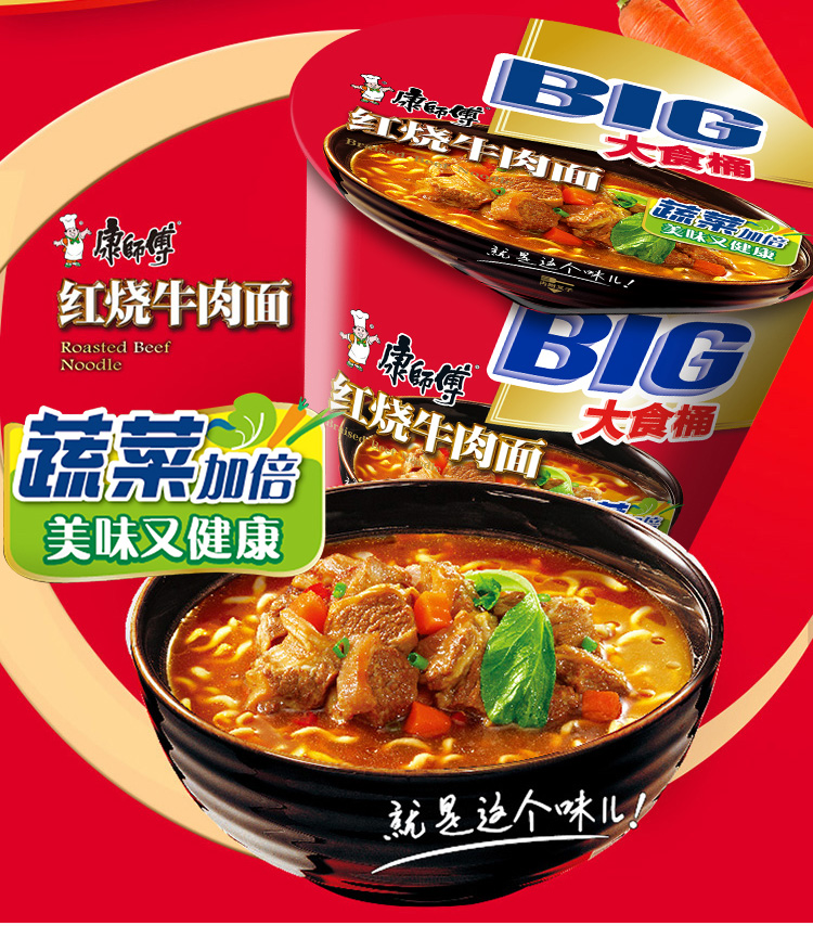 康师傅方便面大食桶红烧牛肉面面12桶桶面泡面整箱装休闲零食