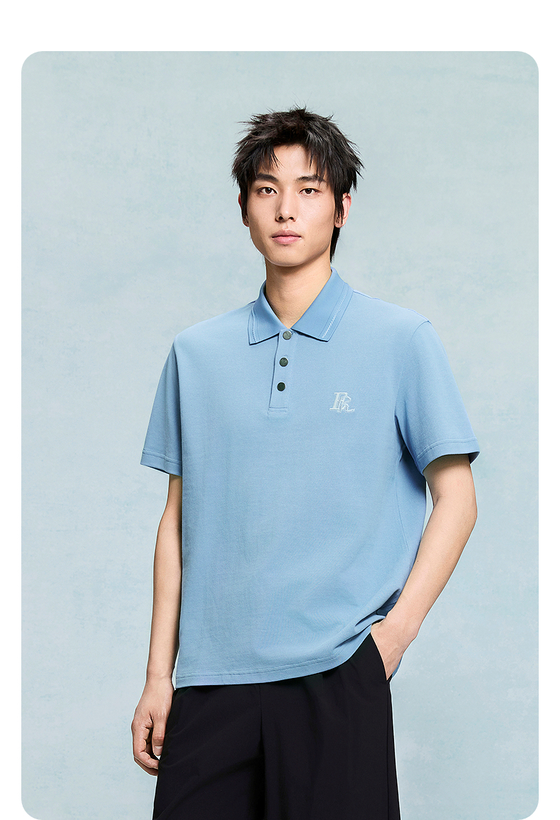 GXG男装 立体宽松通勤polo衫男士上衣简约翻领短袖 25夏热卖