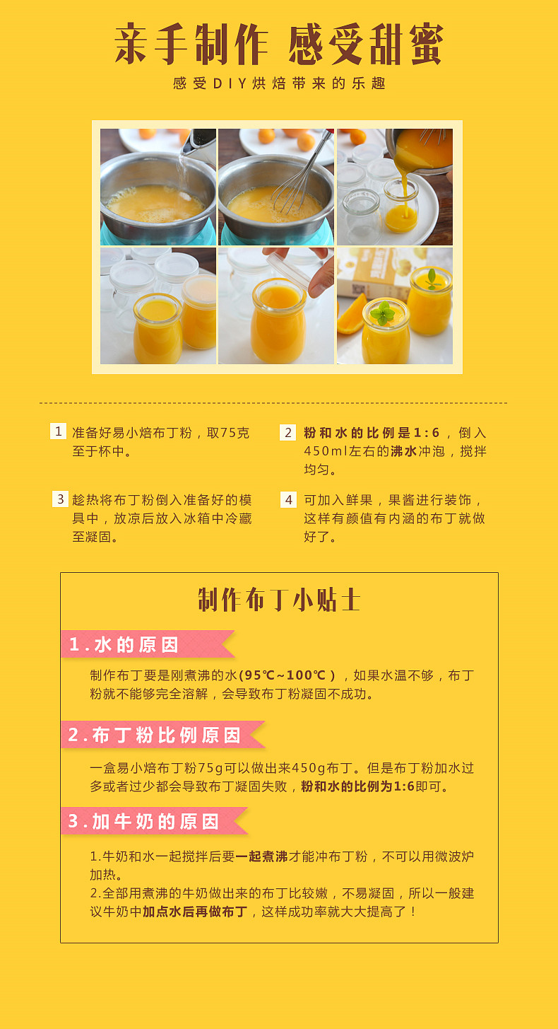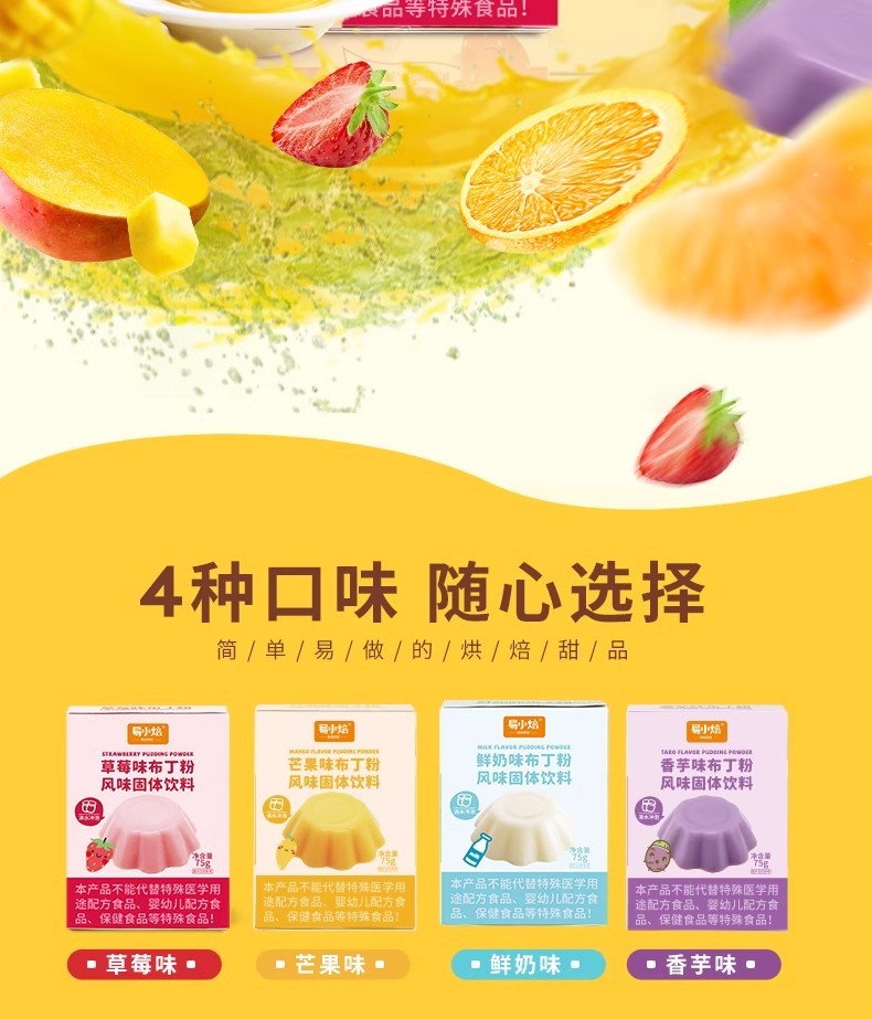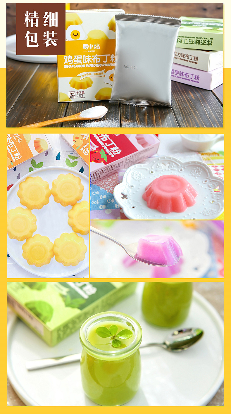 【赠随机款布丁模1个】易小焙布丁粉 75g 布丁粉果冻抹茶芒果布丁粉免煮自制甜品
