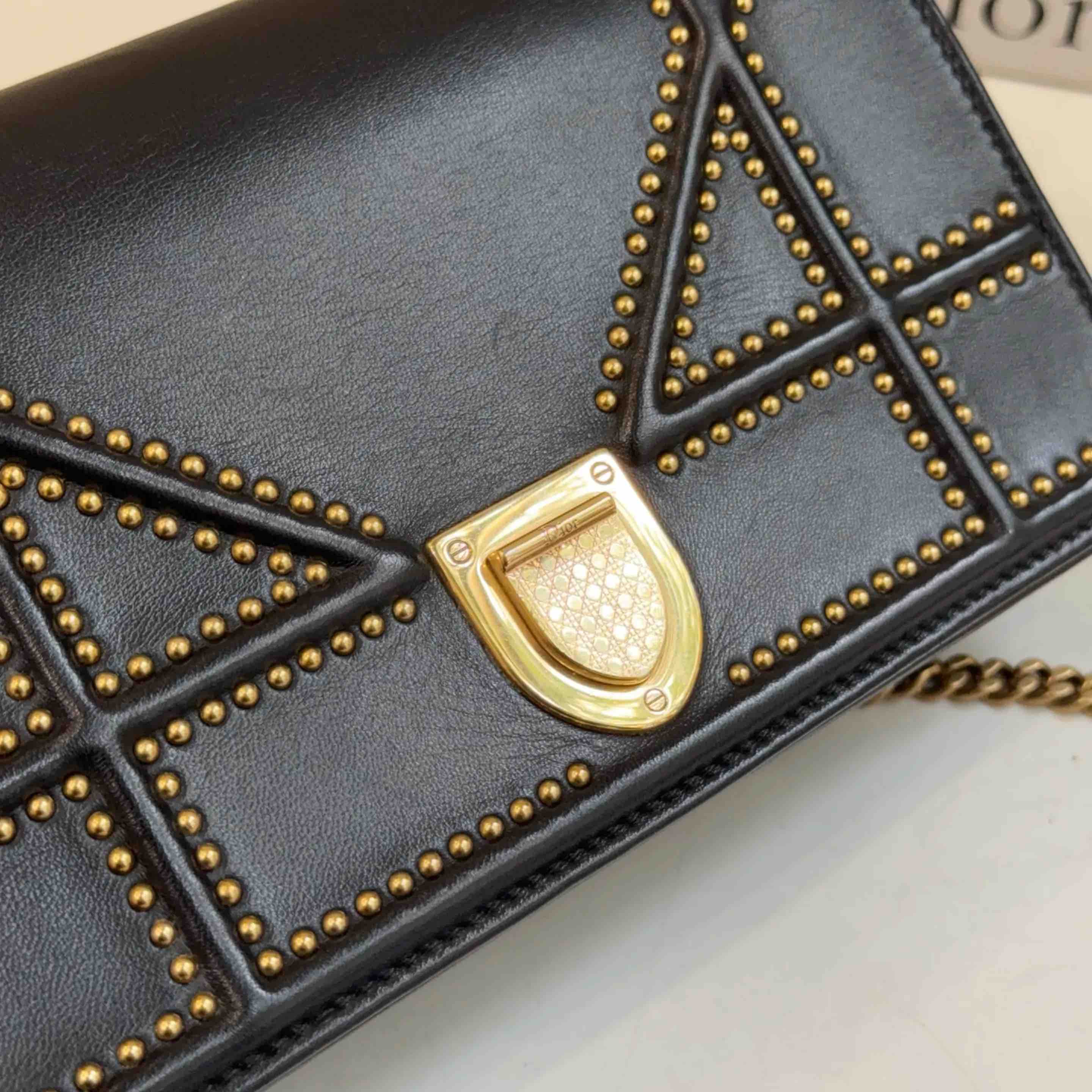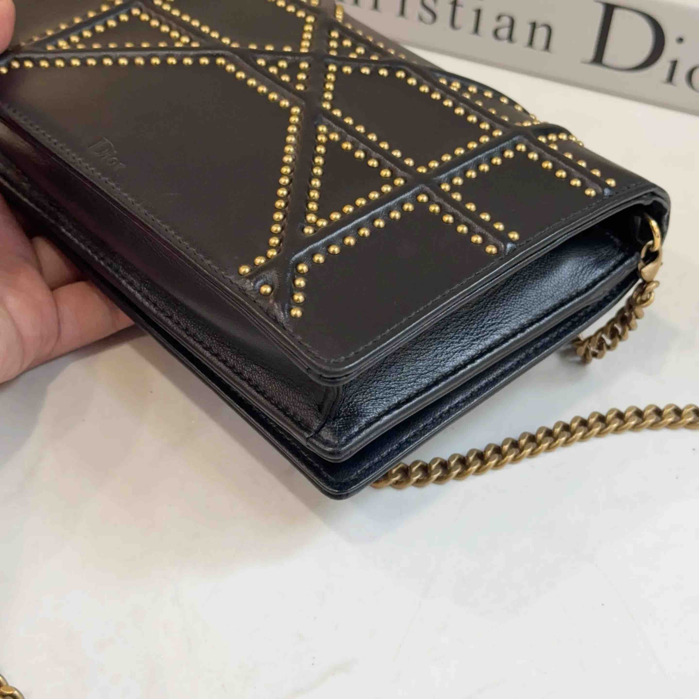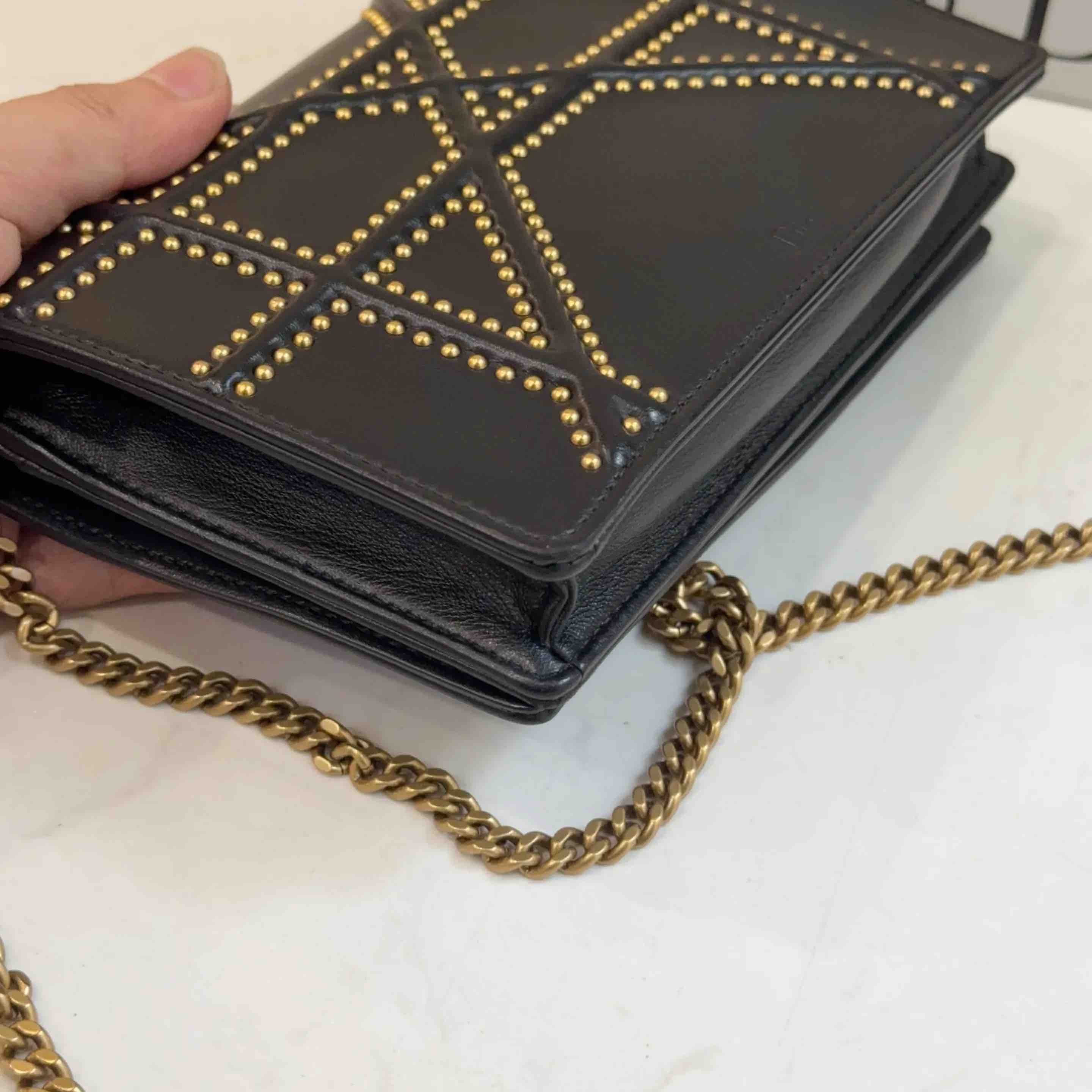 【商品详情】正品二手 Dior mini 黑金 牛皮 盾牌包🎡 95新 19×11 配件:链条 防尘袋。外翻盖两侧正常使用感。黑金财阀千金 百搭