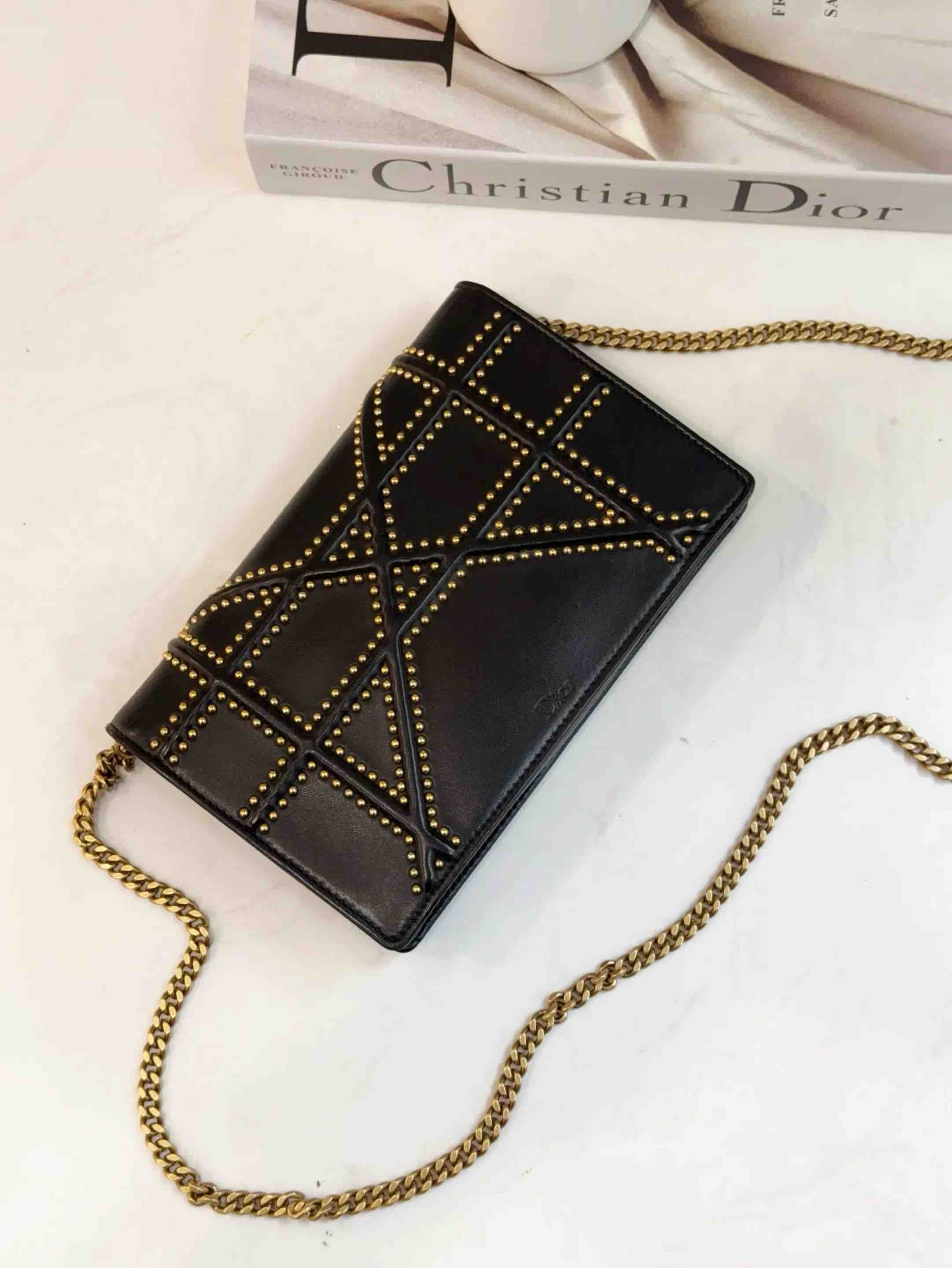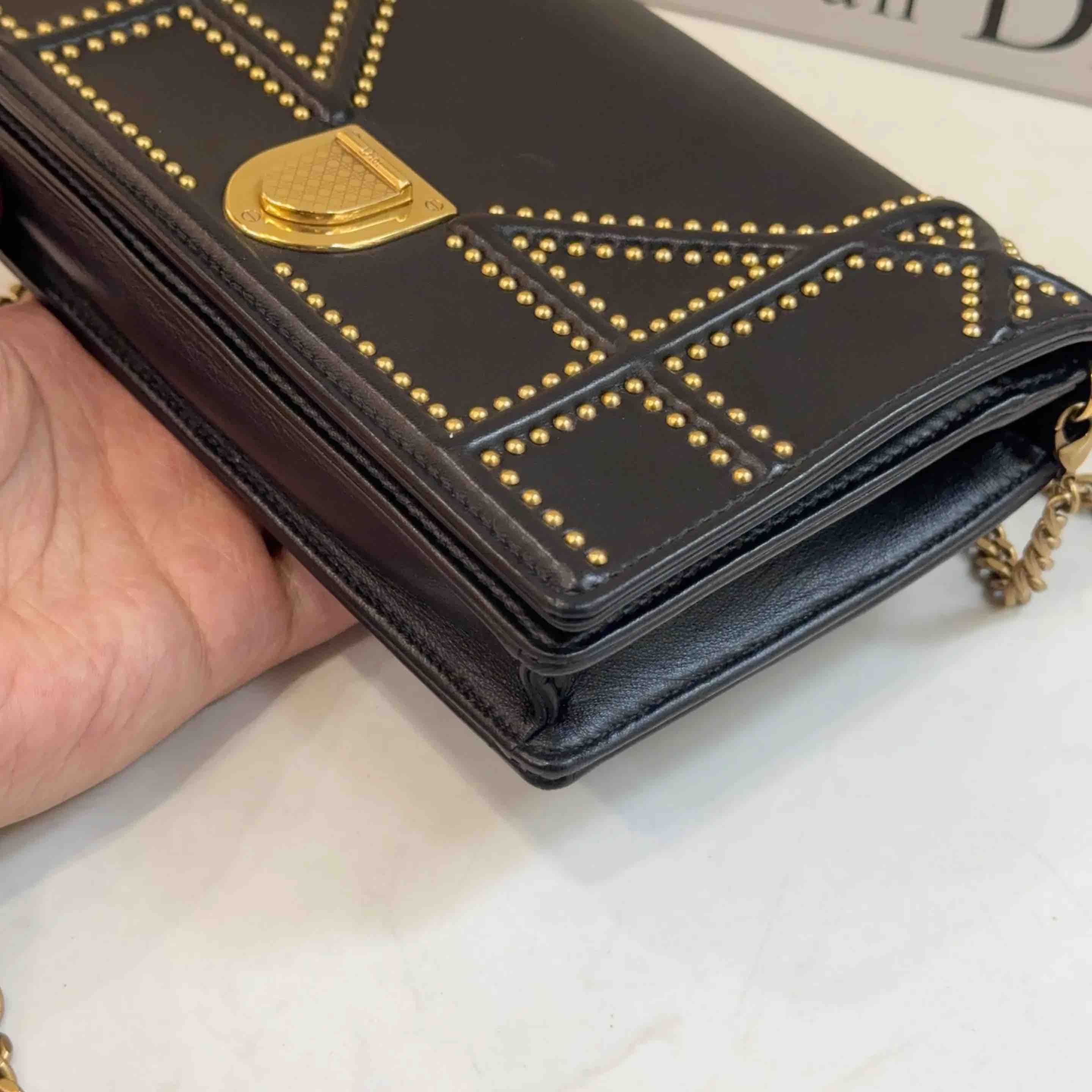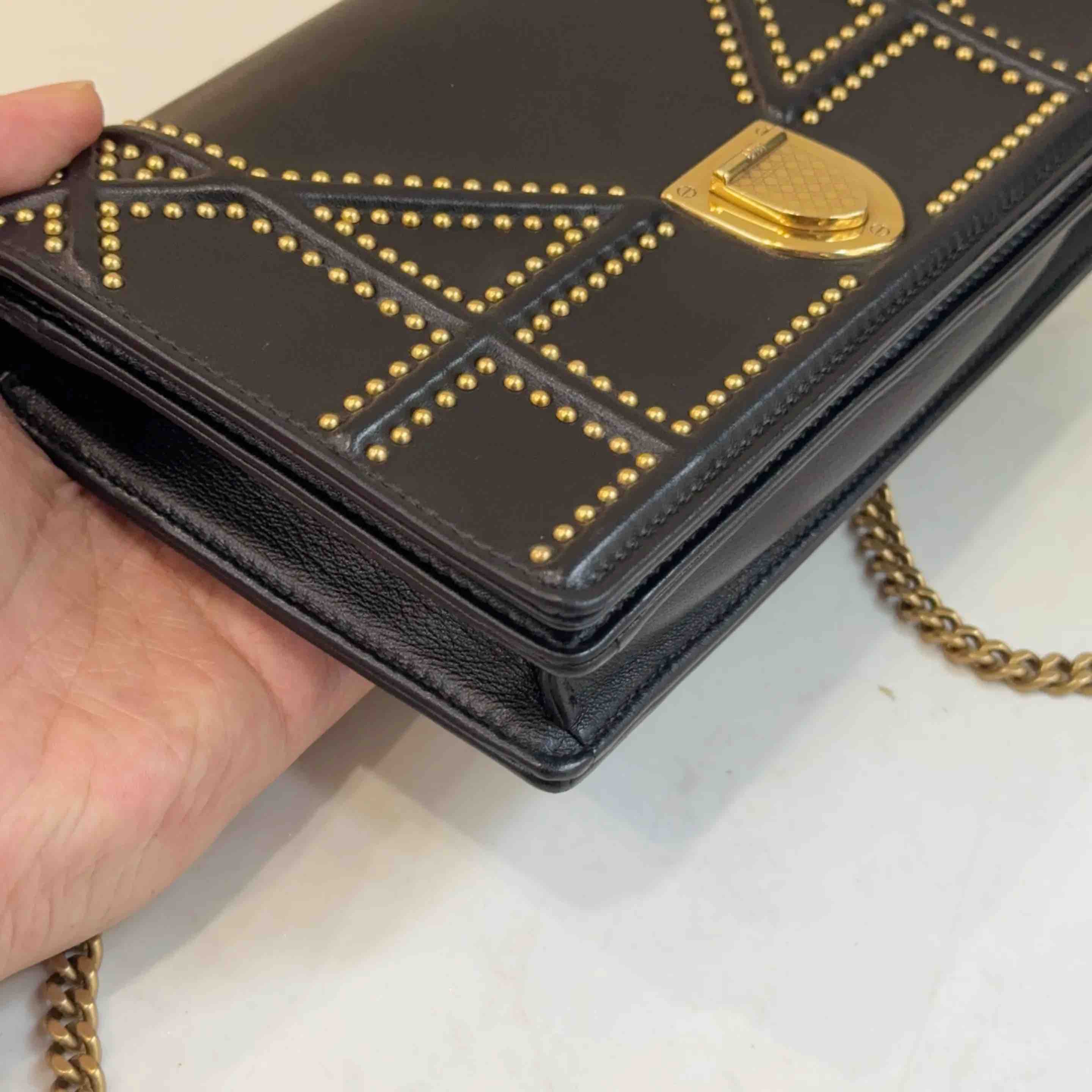 【商品详情】正品二手 Dior mini 黑金 牛皮 盾牌包🎡 95新 19×11 配件:链条 防尘袋。外翻盖两侧正常使用感。黑金财阀千金 百搭