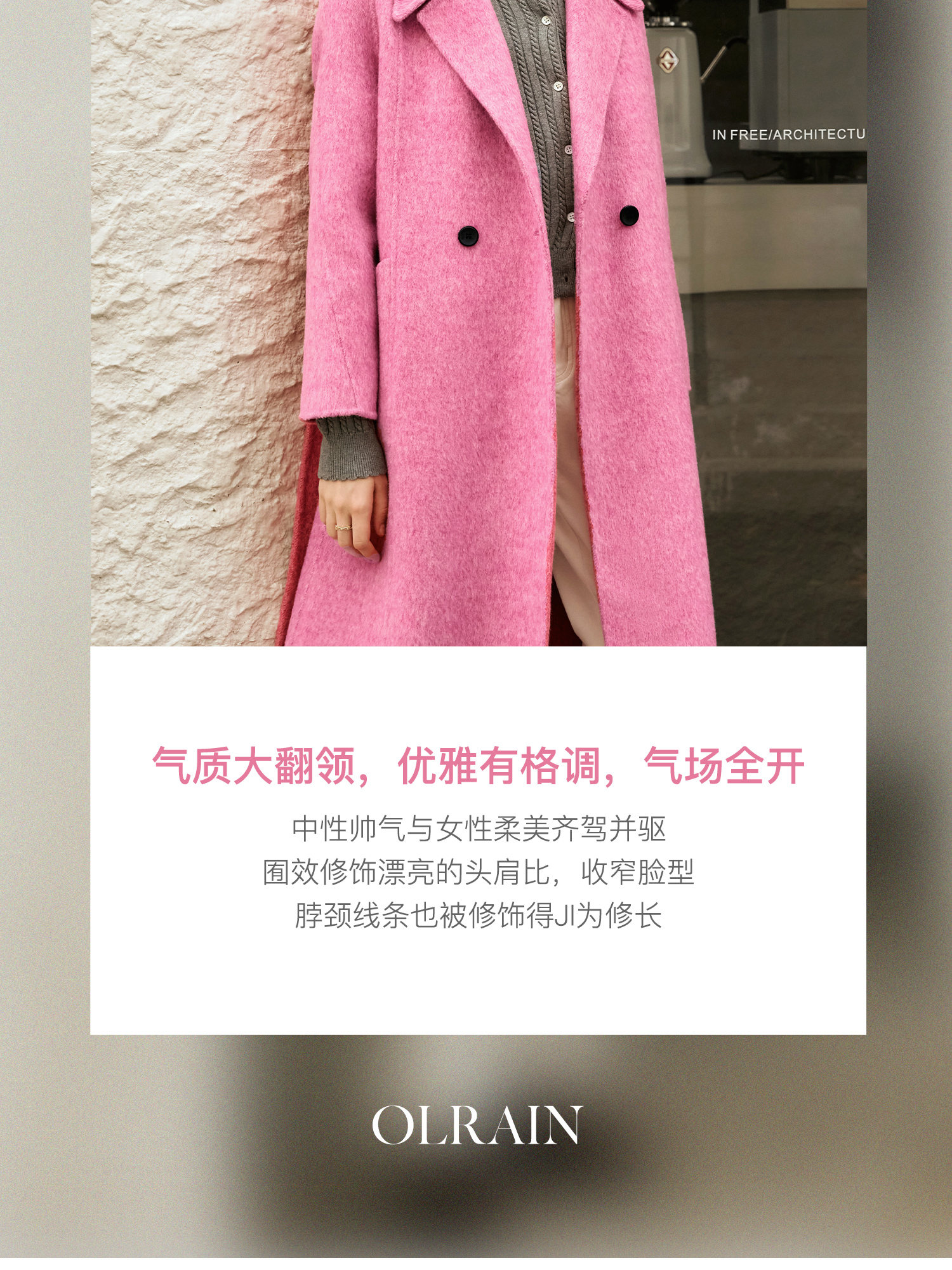 - “精致”是欧芮儿olrain品牌文化的核心,欧芮儿认为,精致的女人,不但要外在动人,更要内在迷人,内外兼修,有魅力、有气质、有内涵,自信而不自傲,优雅而不矫揉,自有万种风情而不轻浮,更不故作矜持。