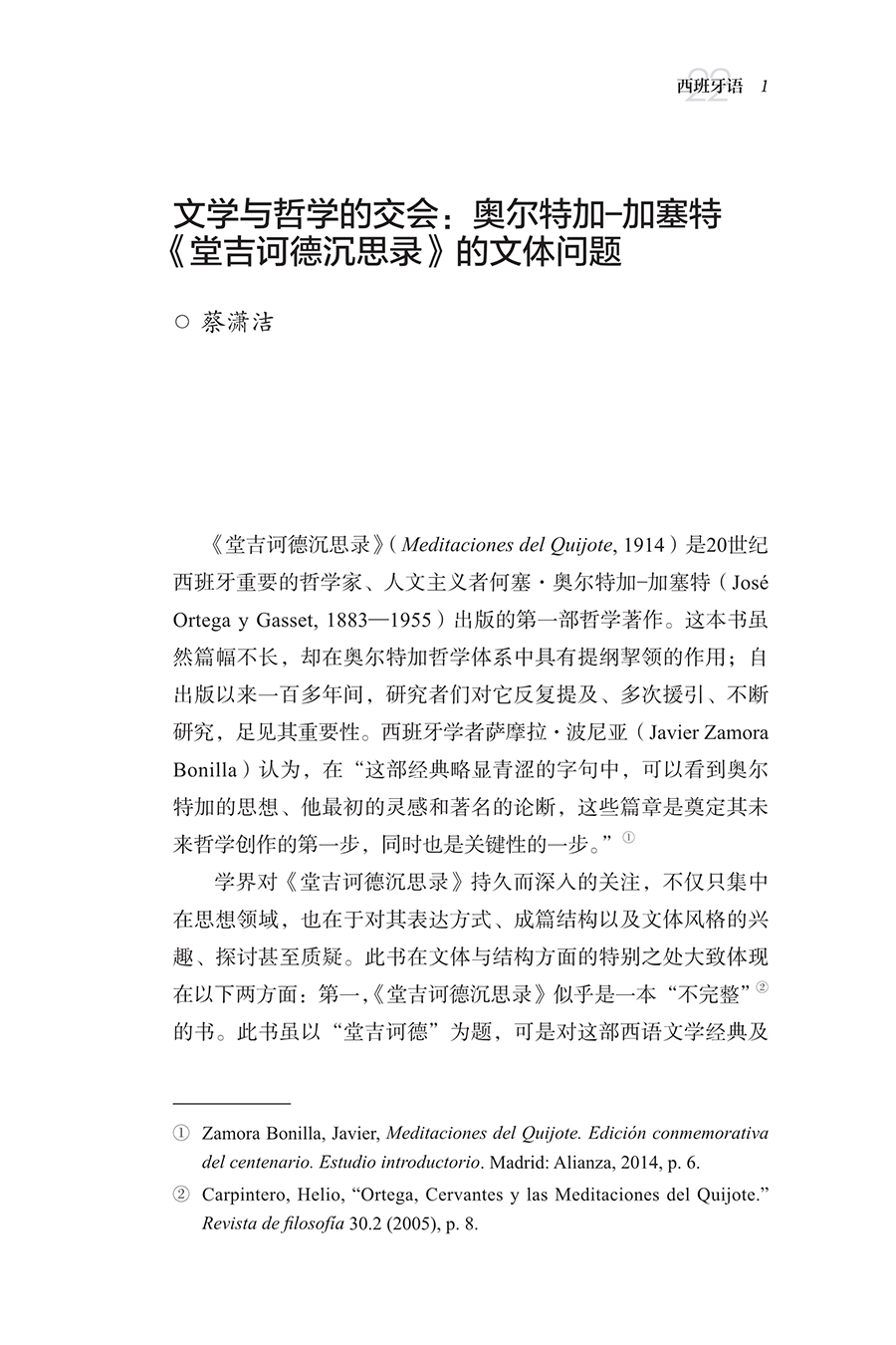 文学与哲学的交会:奥尔特加-加塞特《堂吉诃德沉思录》的文体问题/ 蔡潇洁