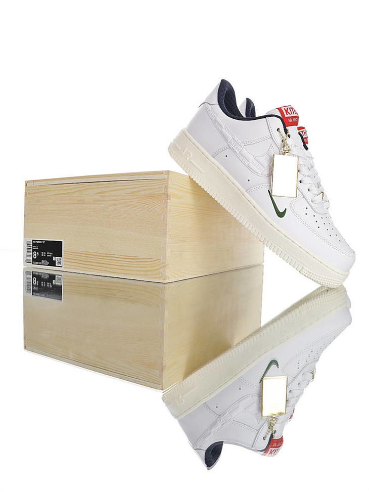耐克 Nike Air Force 1 '07 纽约潮牌联乘 奢华木质礼盒 硬质头层皮鞋面 内置全掌AirSole气垫 白夜蓝森林绿小钩配色