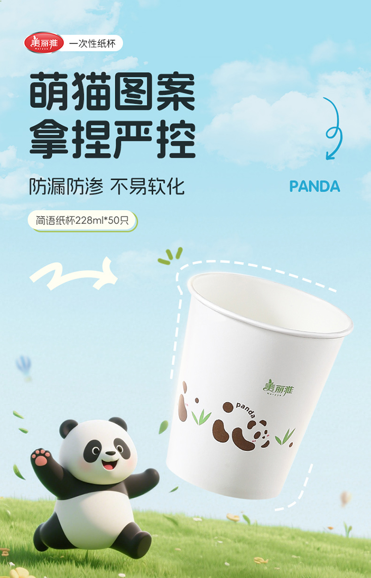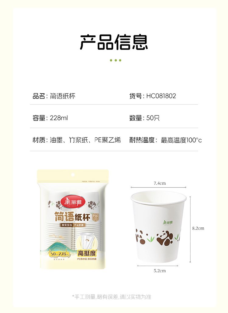 【批发】美丽雅 简语一次性加厚纸杯228ml*50只 一次性杯子耐热不渗漏