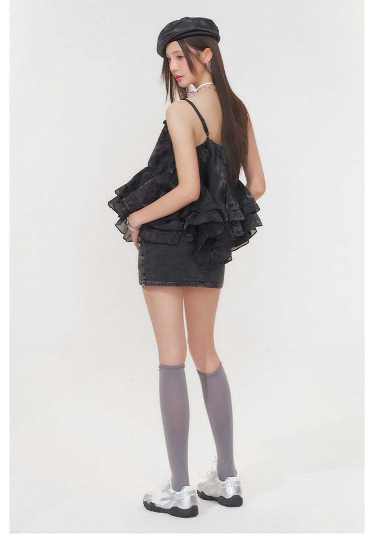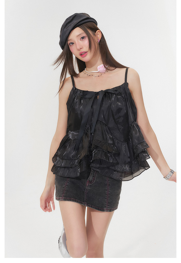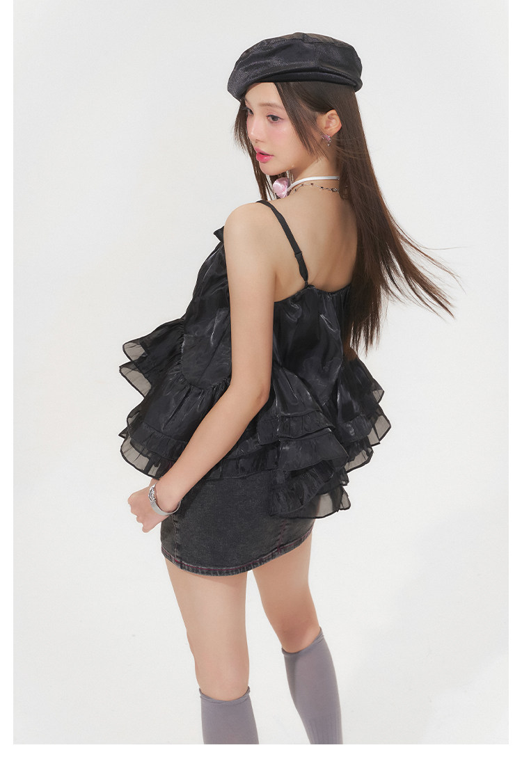 FTT FlyTheTruth『周末派对』 不规则荷叶边吊带背心女夏外穿上衣