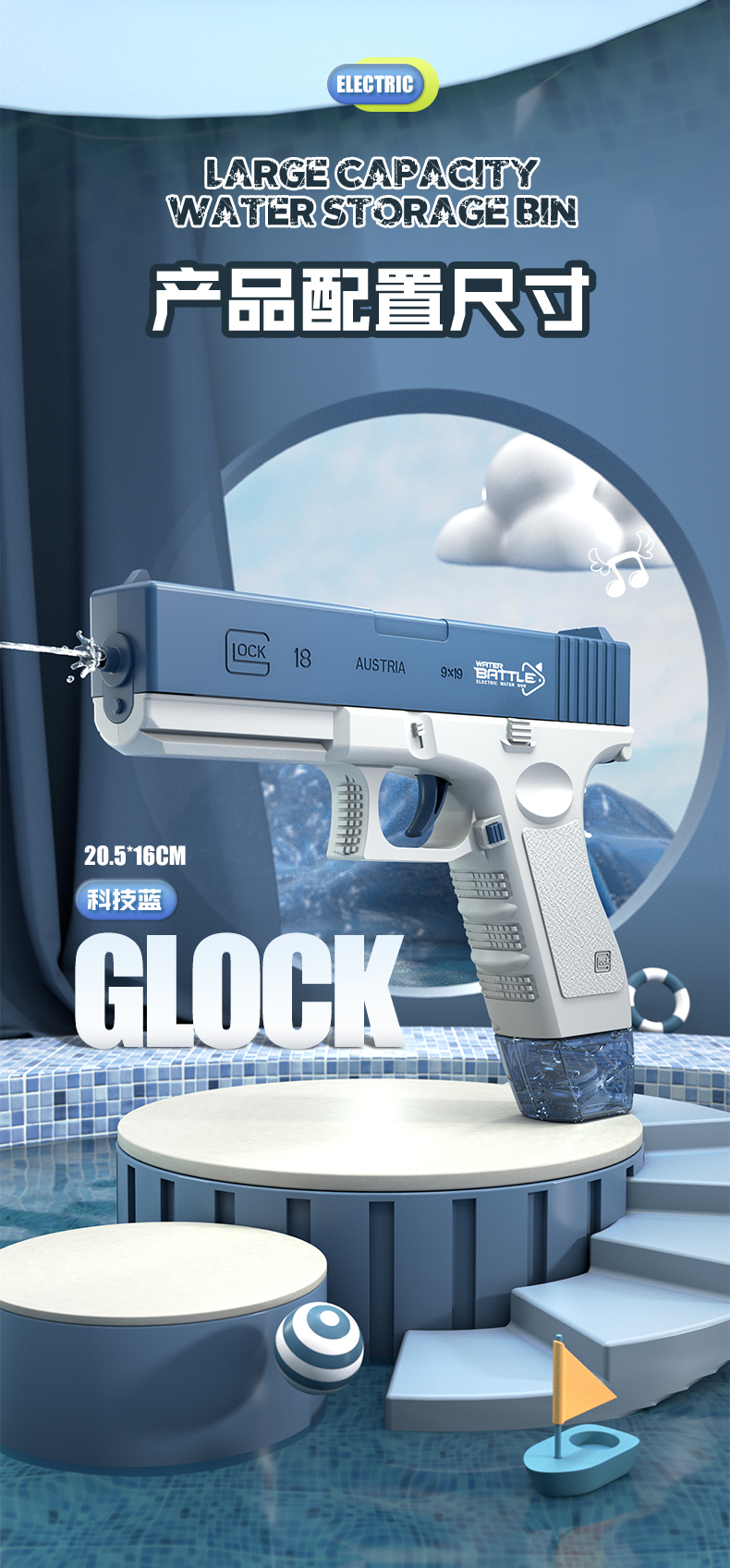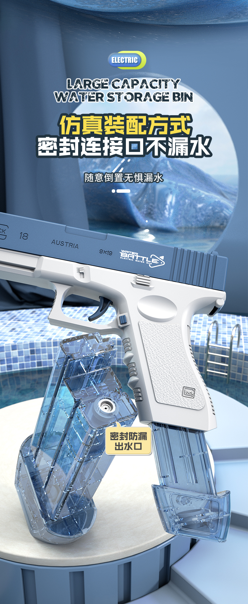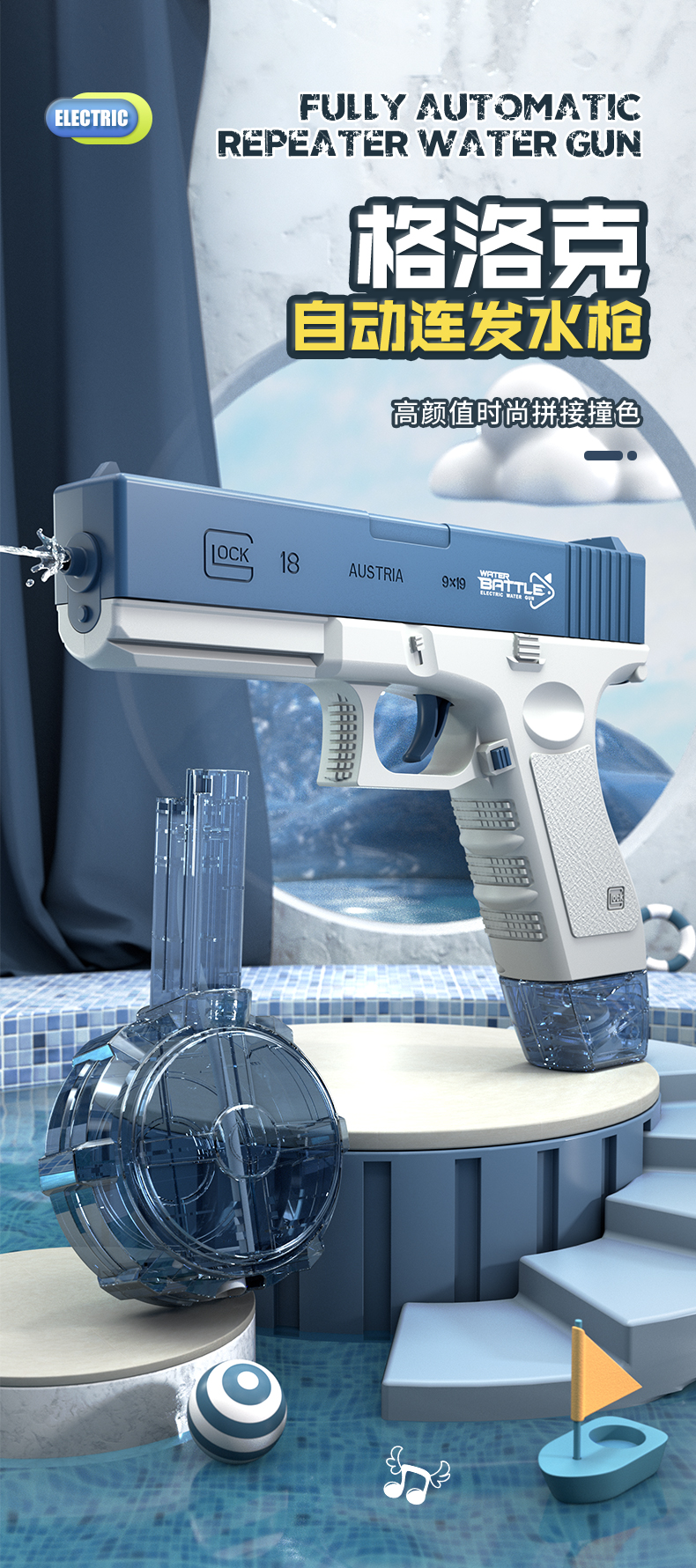 格洛克夏季新款儿童水枪全自动连发电动男孩戏水玩具