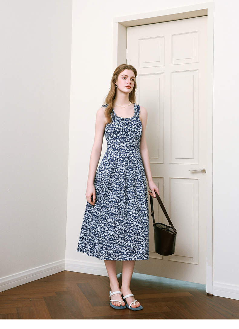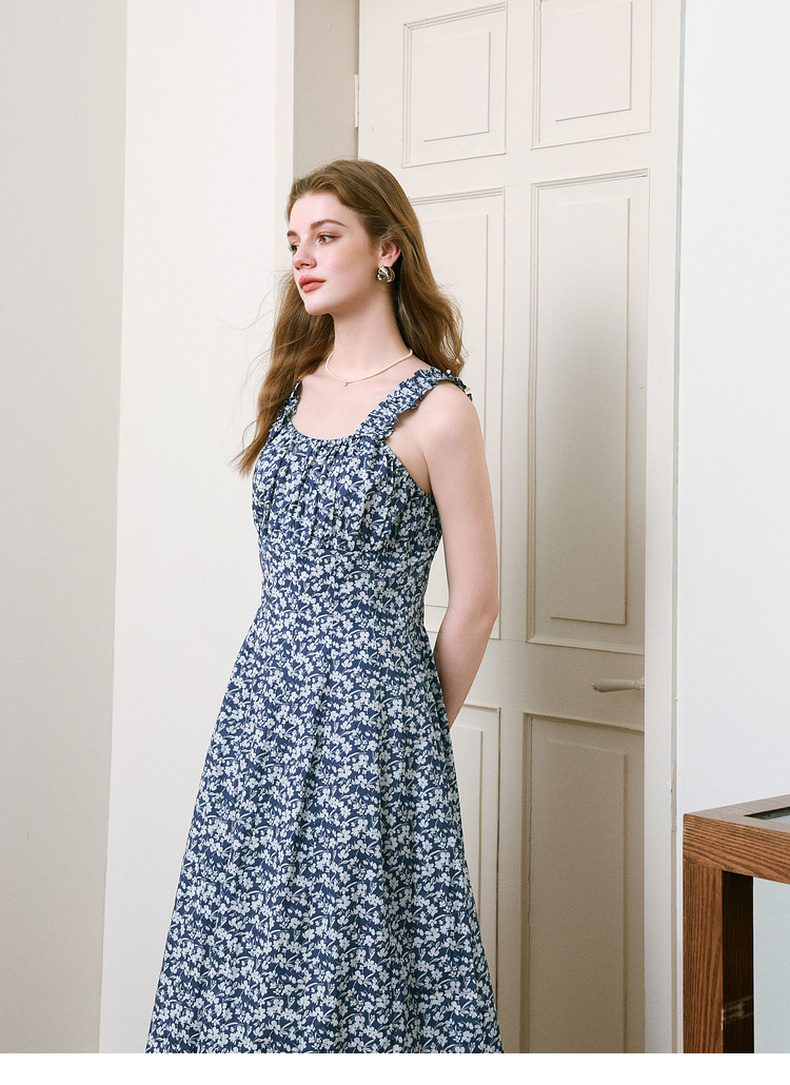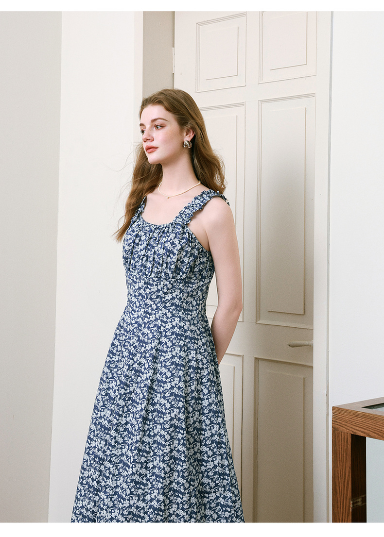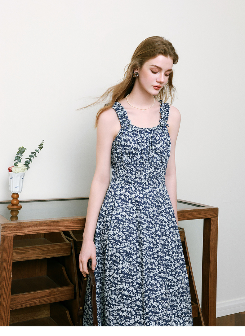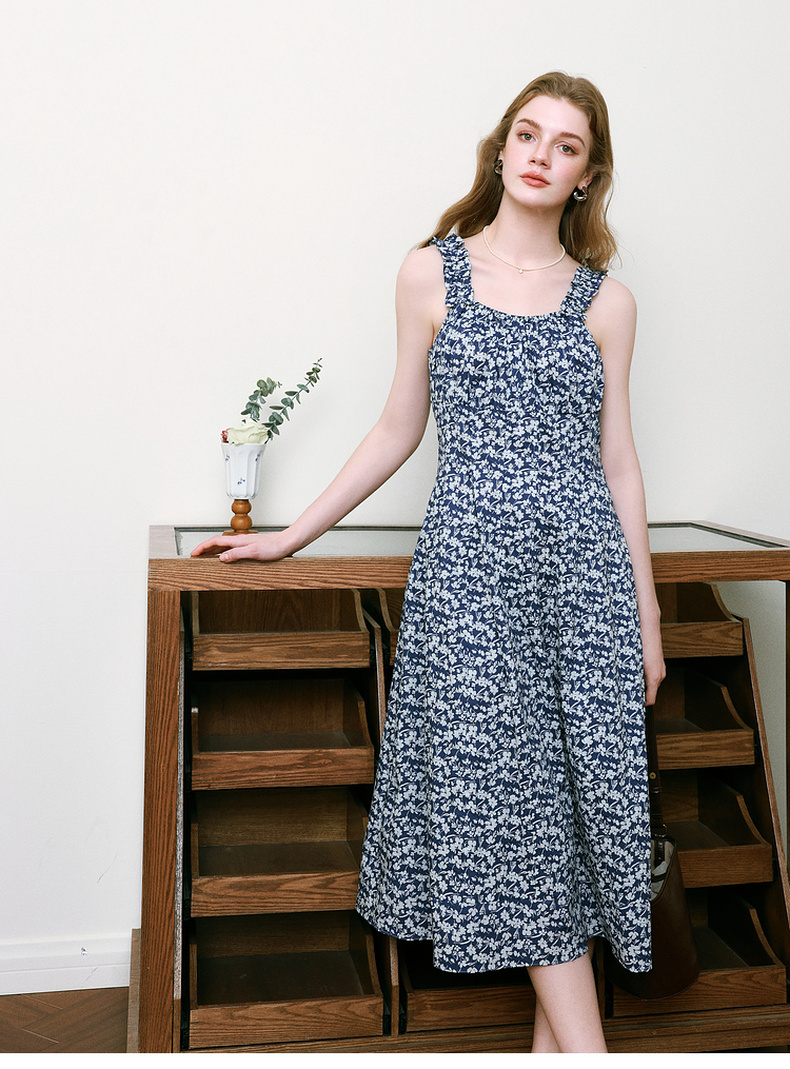 【商场同款】诗凡黎诗凡黎碎花吊带连衣裙25夏新款收腰中长裙3G4390311