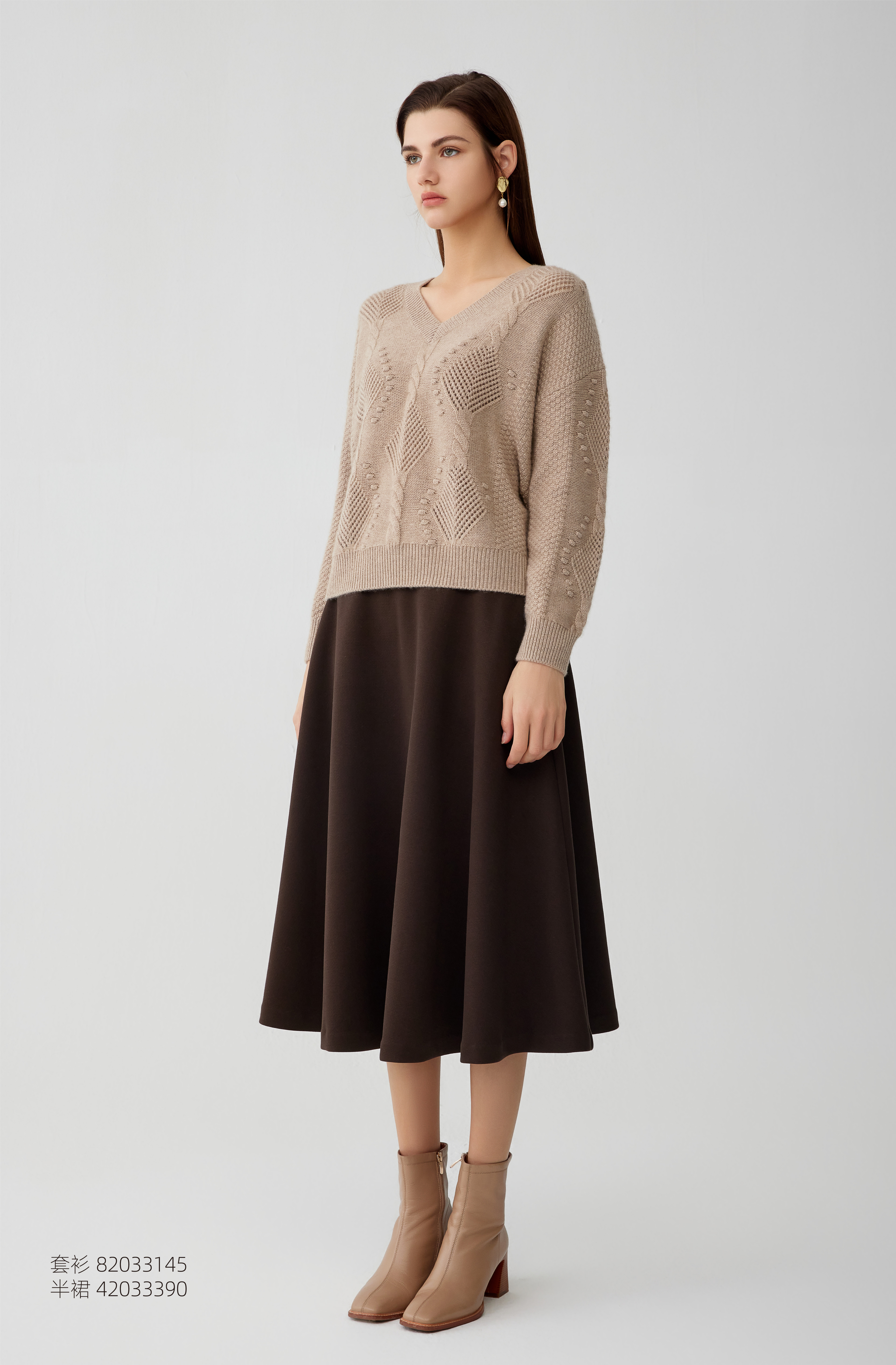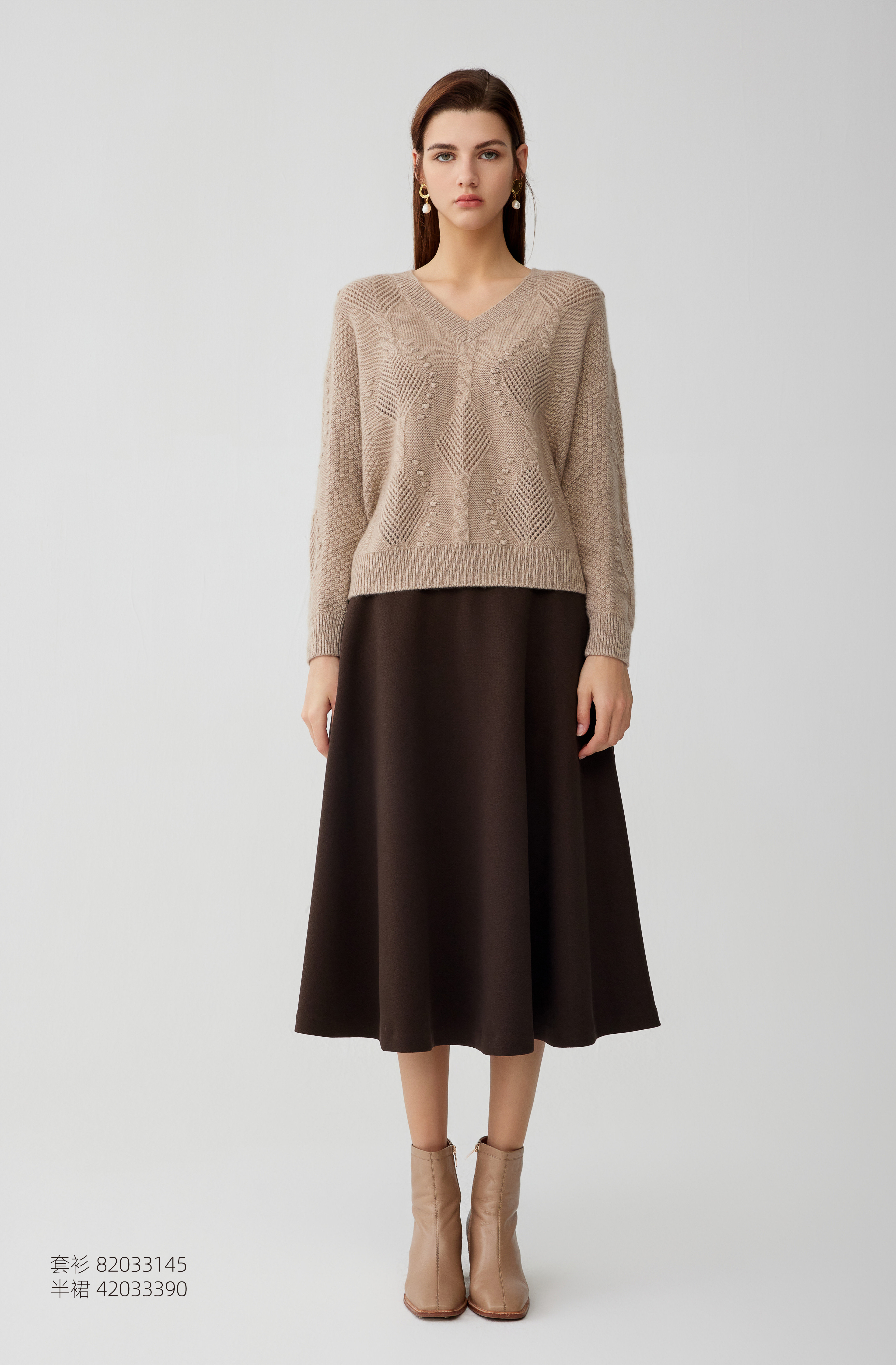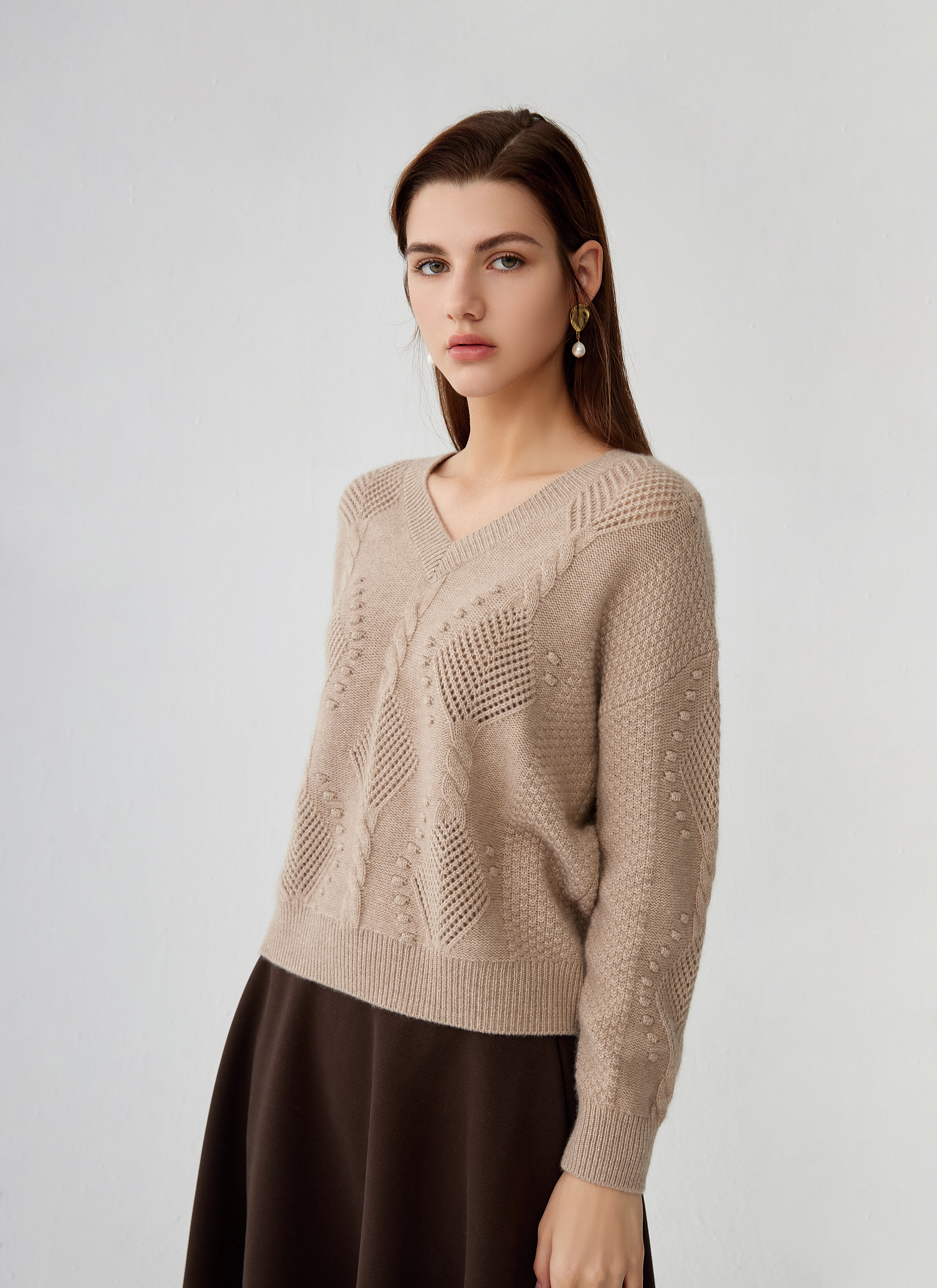 【V领立体绞花羊绒衫】羊绒世家秋冬新品女士100%山羊绒内搭保暖针织毛衣