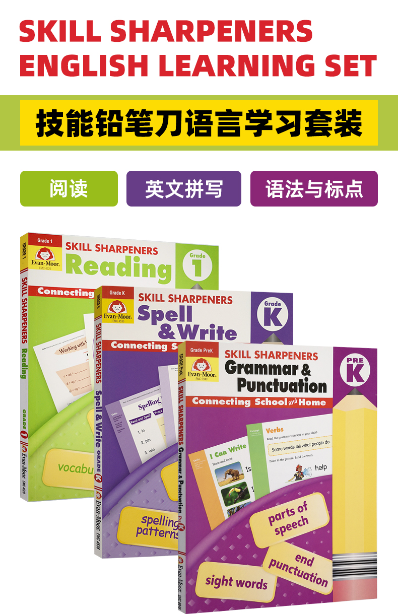 【宝宝玩英语】Evan-Moor Skill Sharpeners English Learning Set. 技能铅笔刀语言学习套装