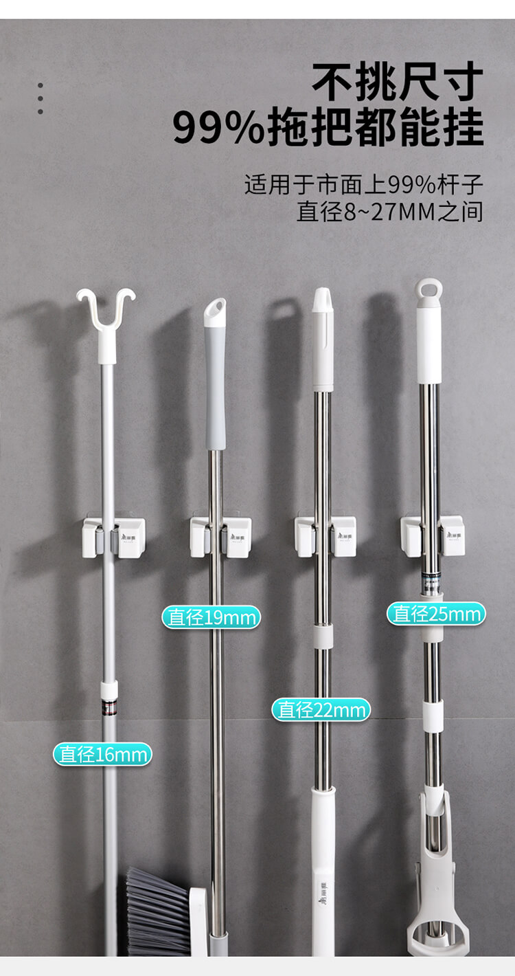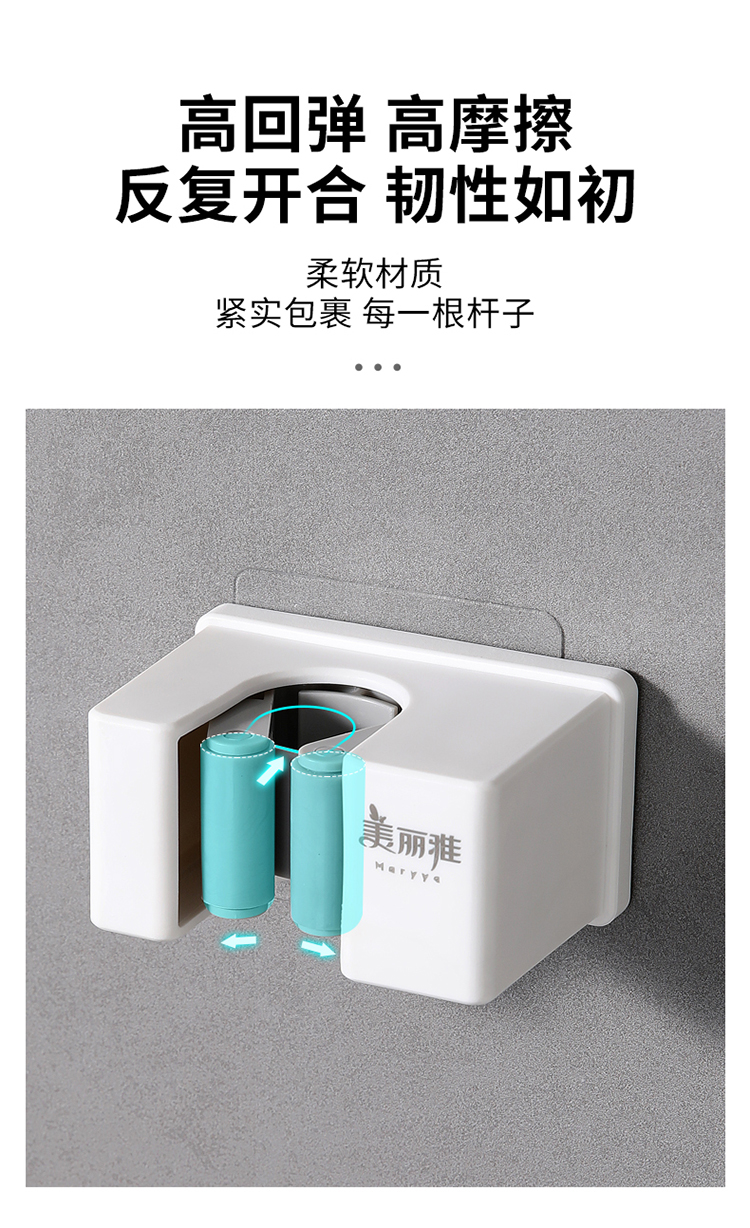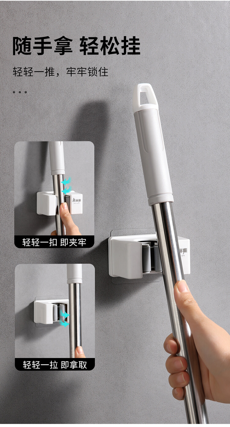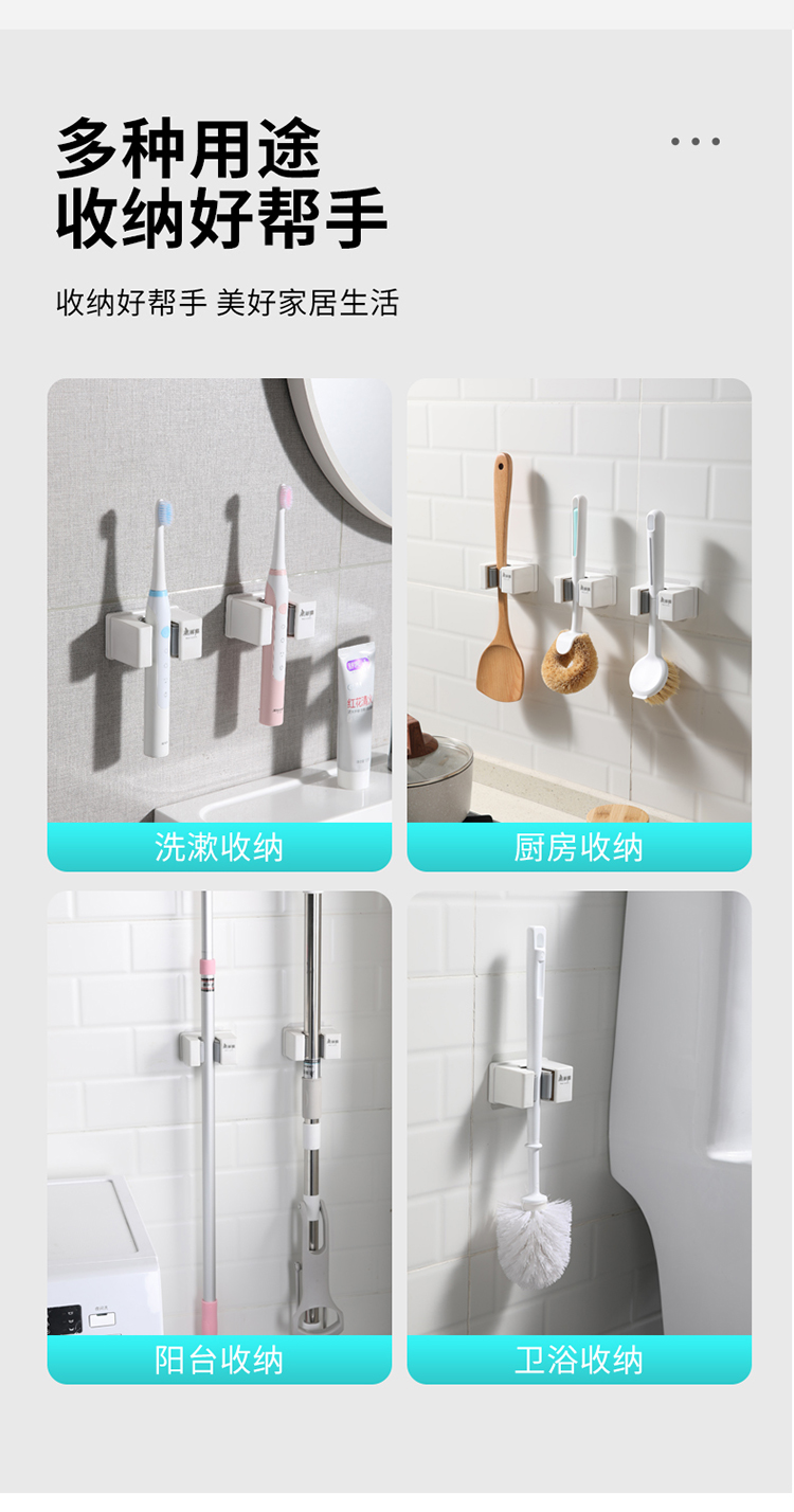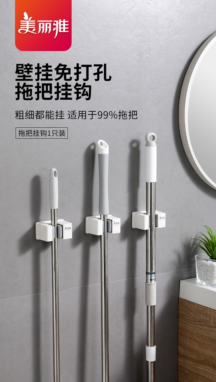 美丽雅多功能拖把收纳架子免打孔挂钩神器 壁挂式卫生间拖把夹卡扣