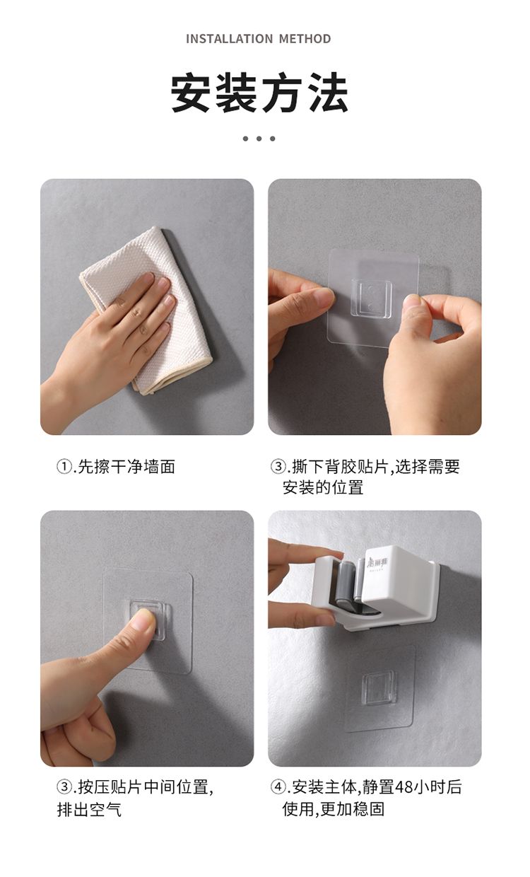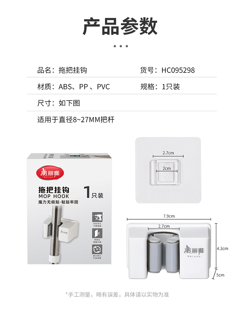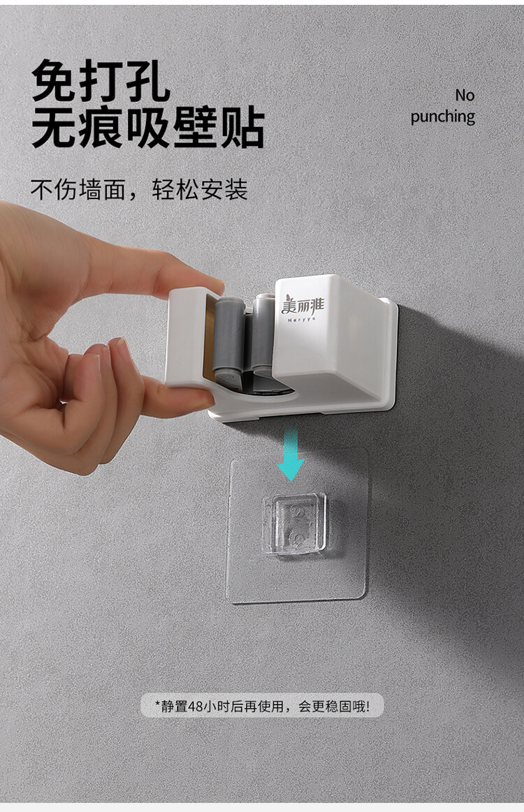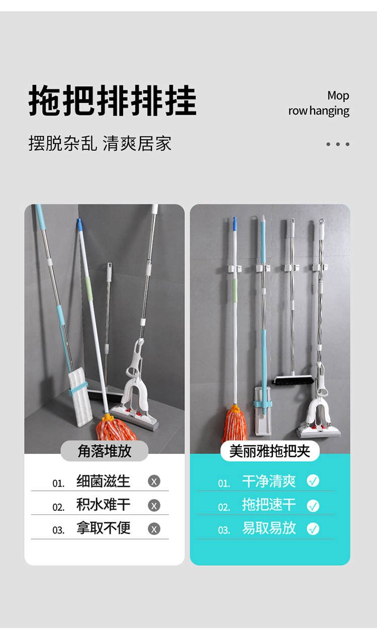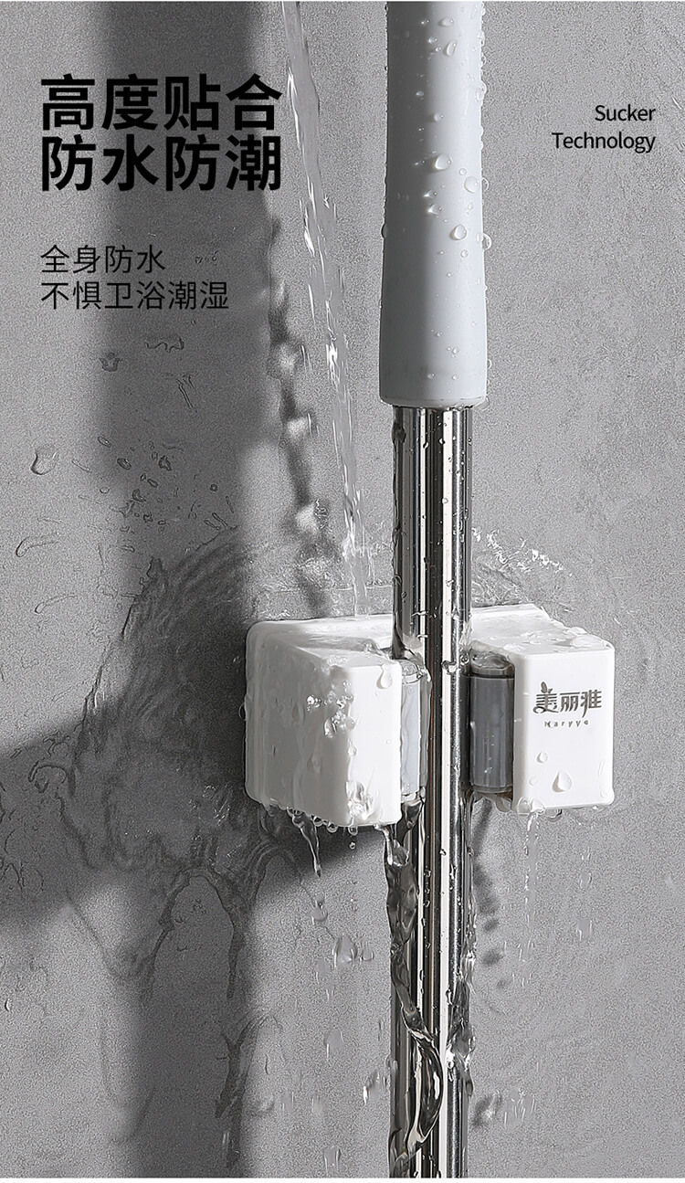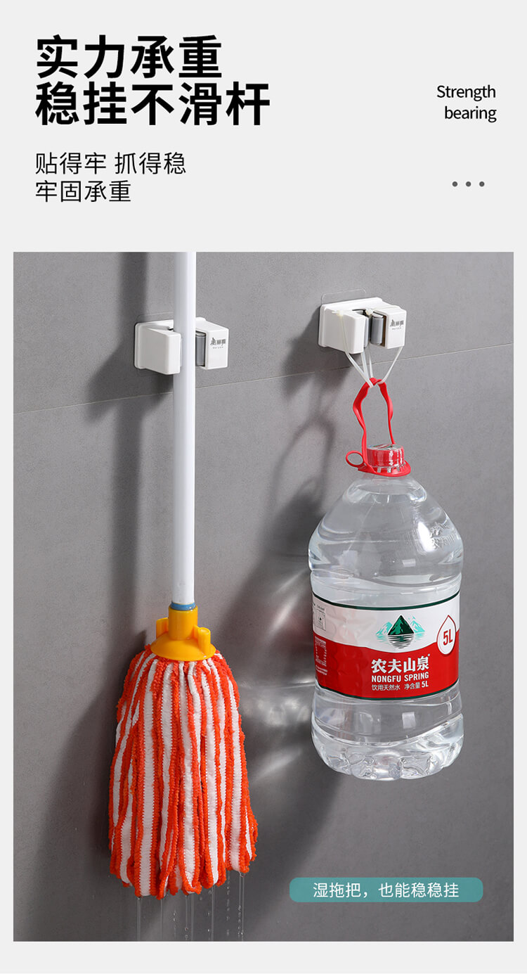 美丽雅多功能拖把收纳架子免打孔挂钩神器 壁挂式卫生间拖把夹卡扣