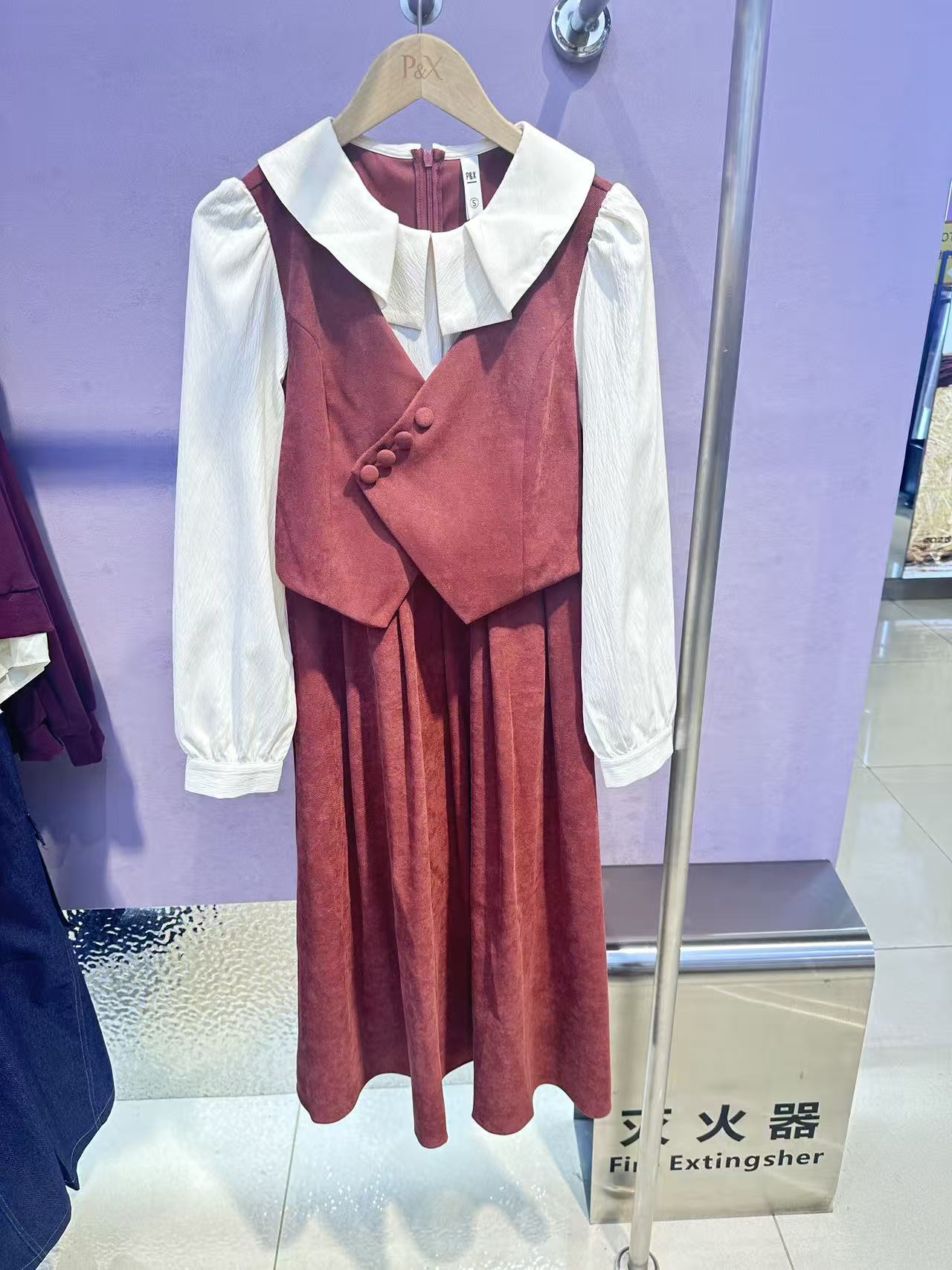 P&X设计师女装 梭织连衣长裙 红色 825108092