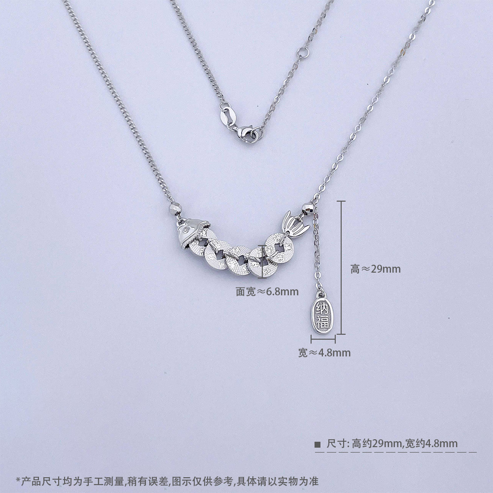 【限时8.8折】【线上铂金馆】PT950 #碎碎冰 #招财纳福 【国际铂金协会】铂金镂空锦鲤碎碎冰方孔金币仿五帝币调节套链(BTL00300)预售产品下单后不退款不退货不换货不补差价)