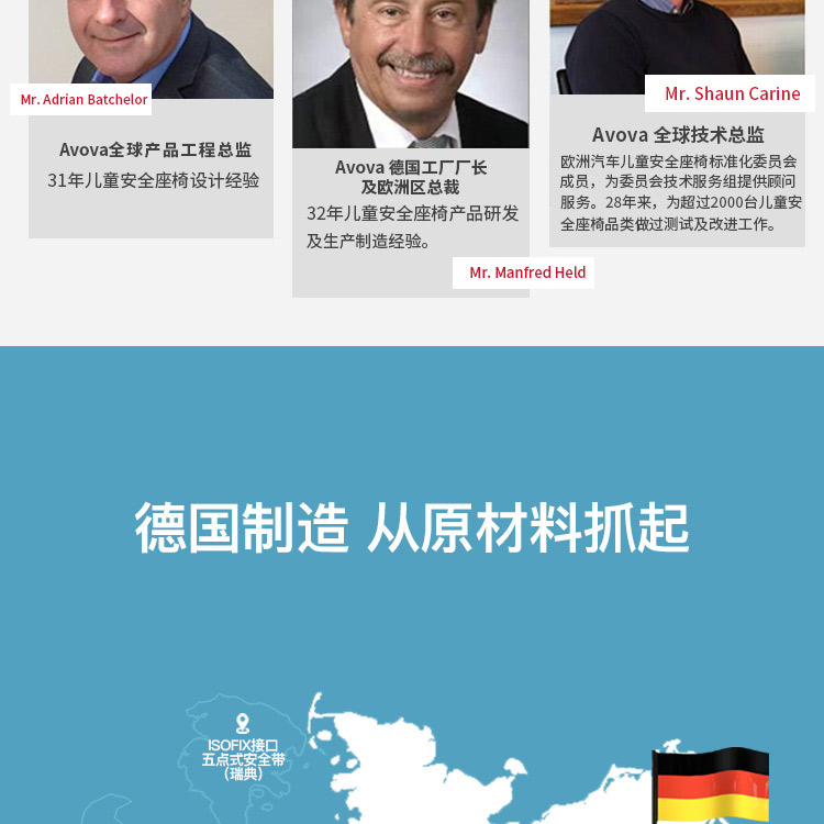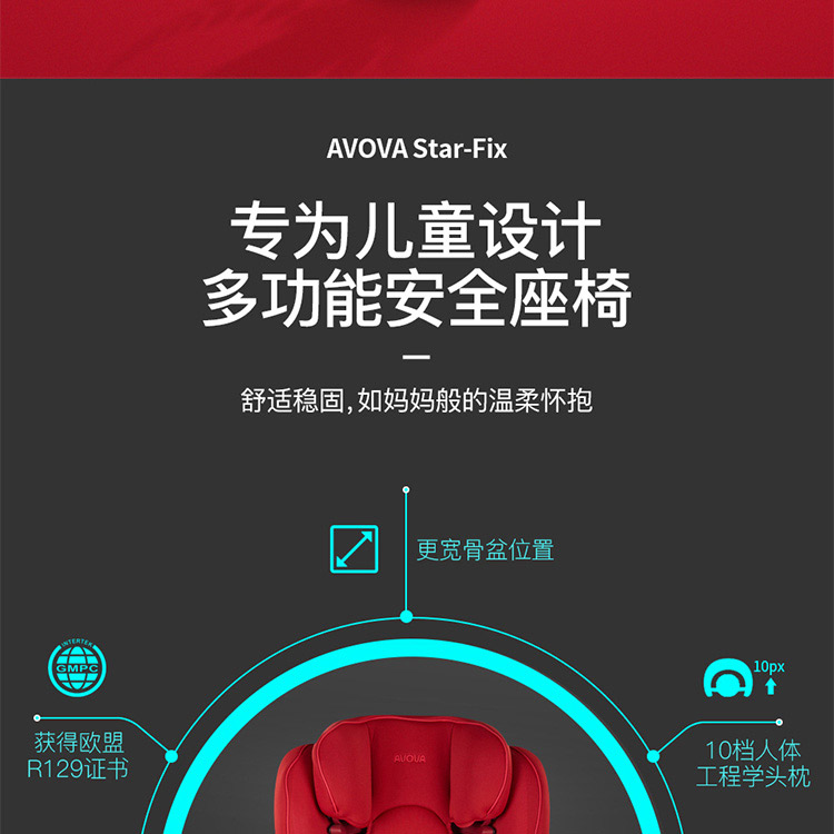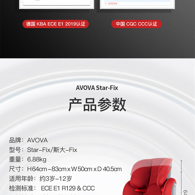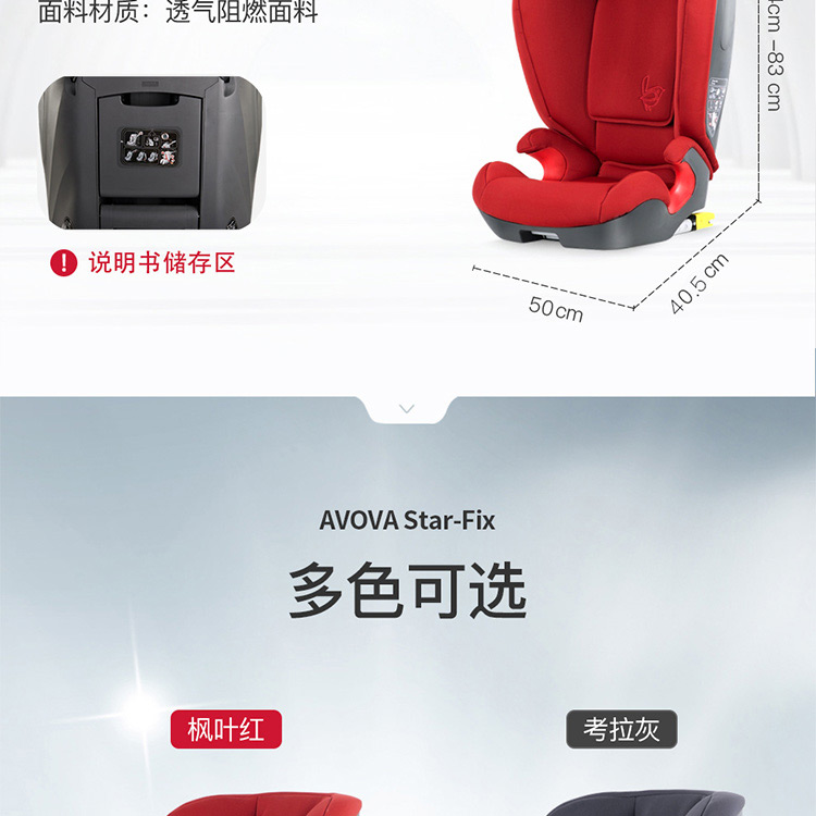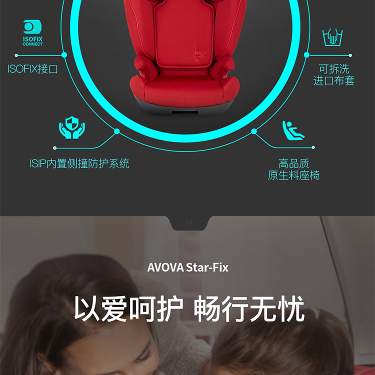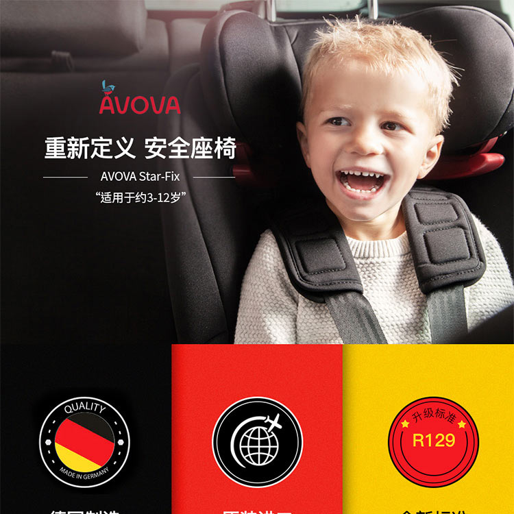 AVOVA德国制造进口儿童安全座椅汽车用斯大Star-Fix宝宝车载3-12岁R129认证ISOFIX接口 深海蓝