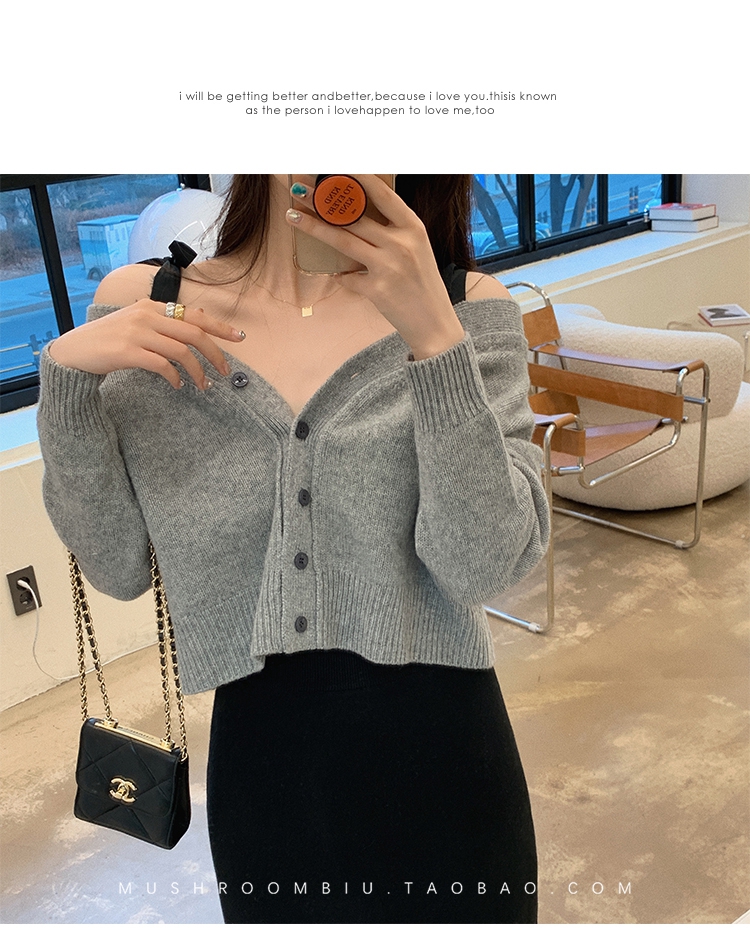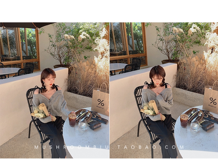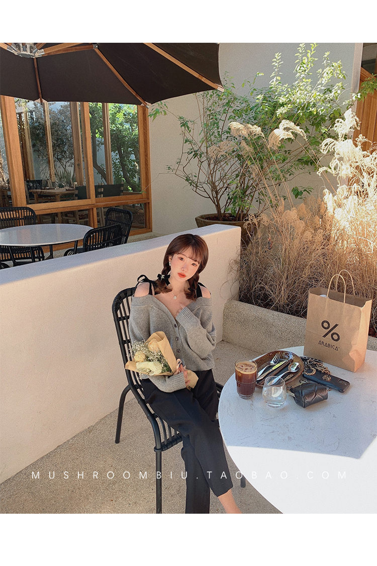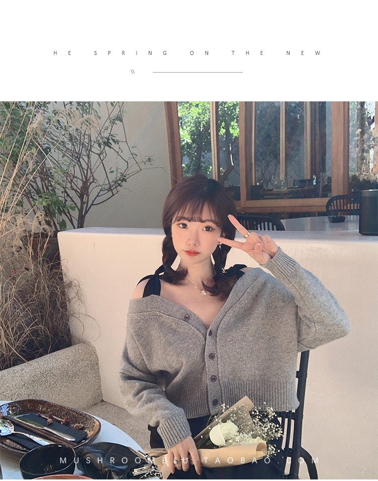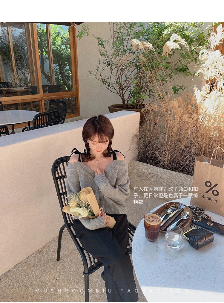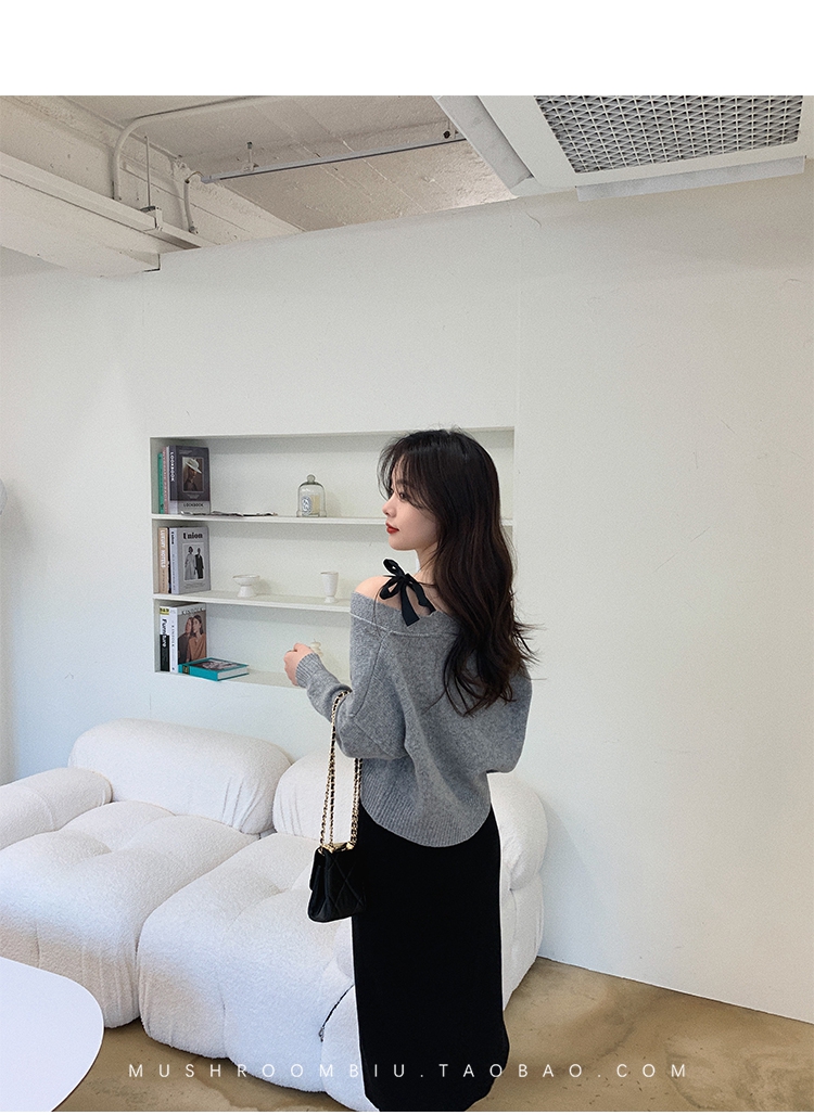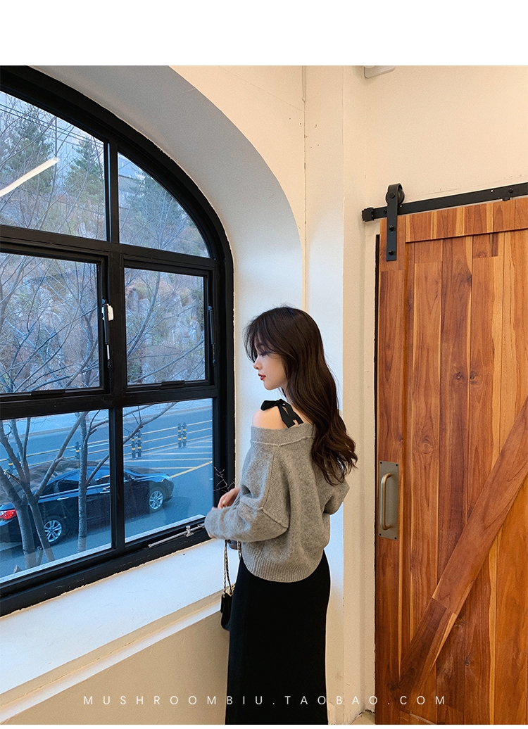 【金蘑菇菇 初恋布拉格】温柔本人 优雅少女感的心机露肩小毛衣哦