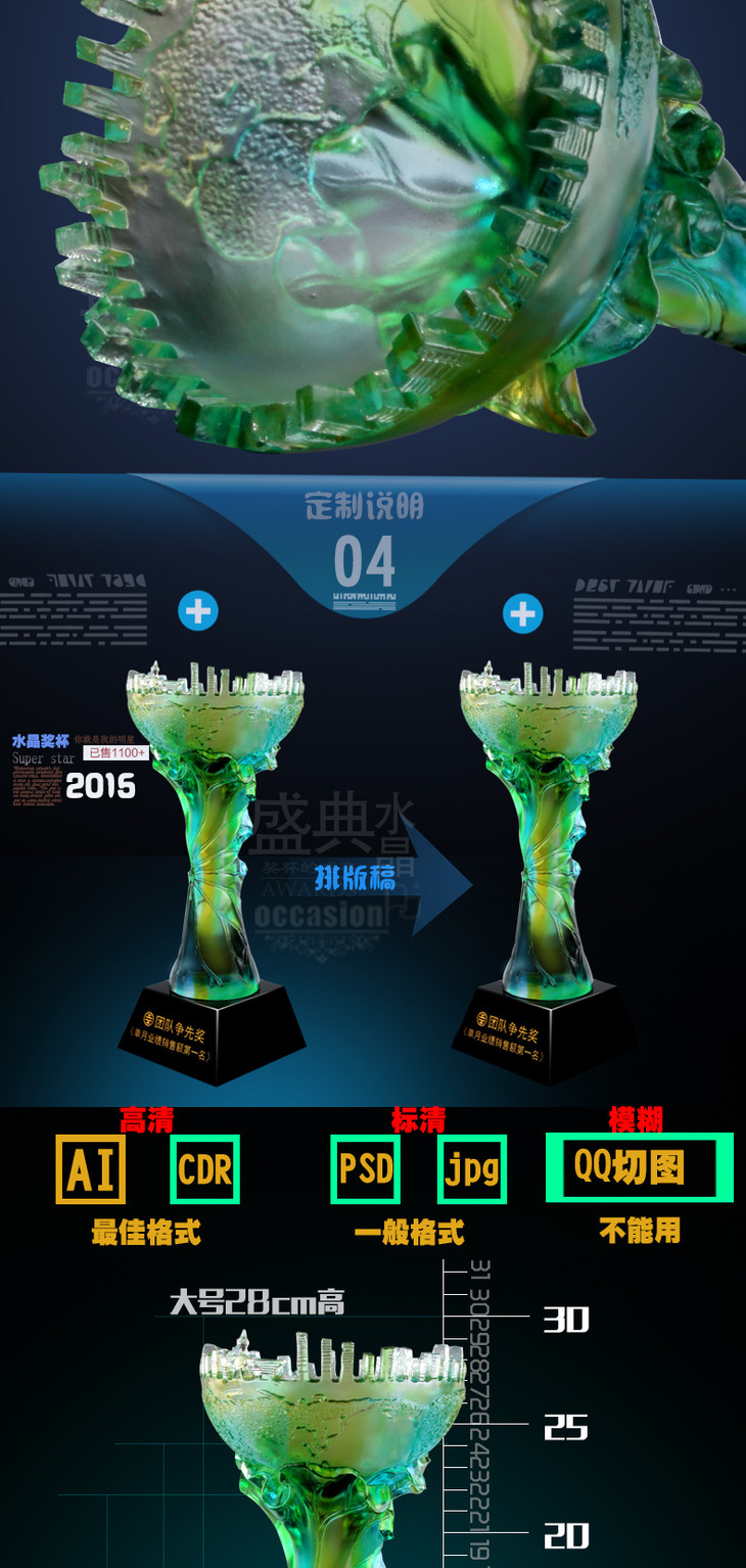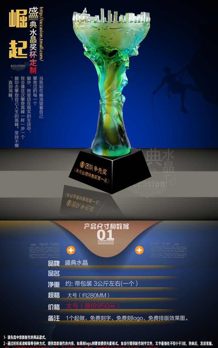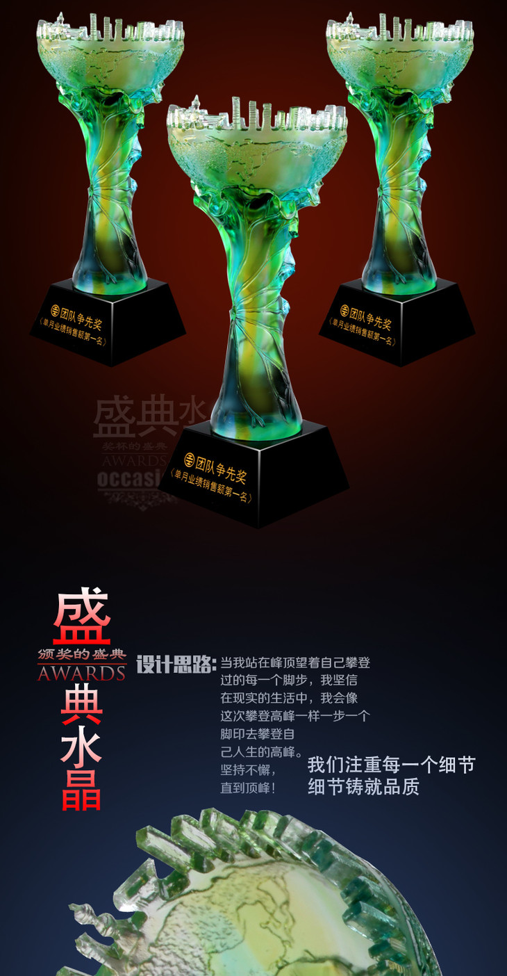 琉璃奖杯定制 水晶 奖牌 比赛颁奖纪念品 现货奖座 免费刻字