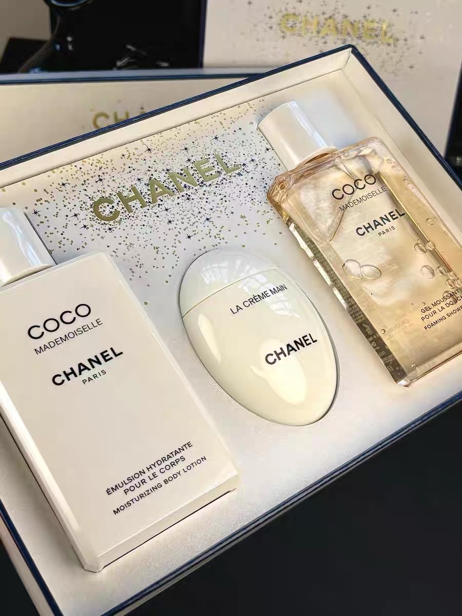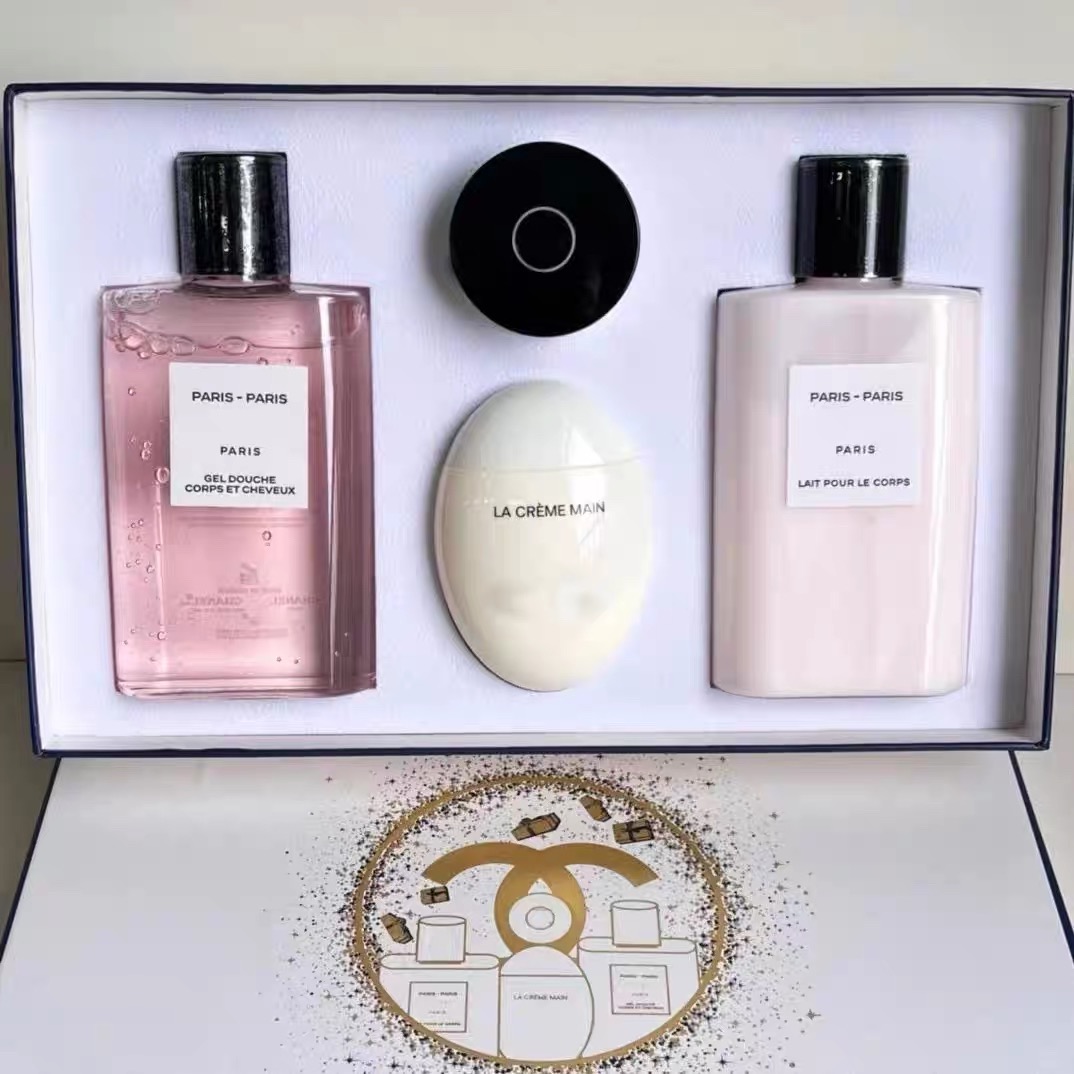 香奈儿巴黎全身香氛四件套升级圣诞限定礼盒+手提袋规格:巴黎之水200ml+巴黎身体乳200ml+鹅蛋护手霜50ml+山茶花唇膜10g